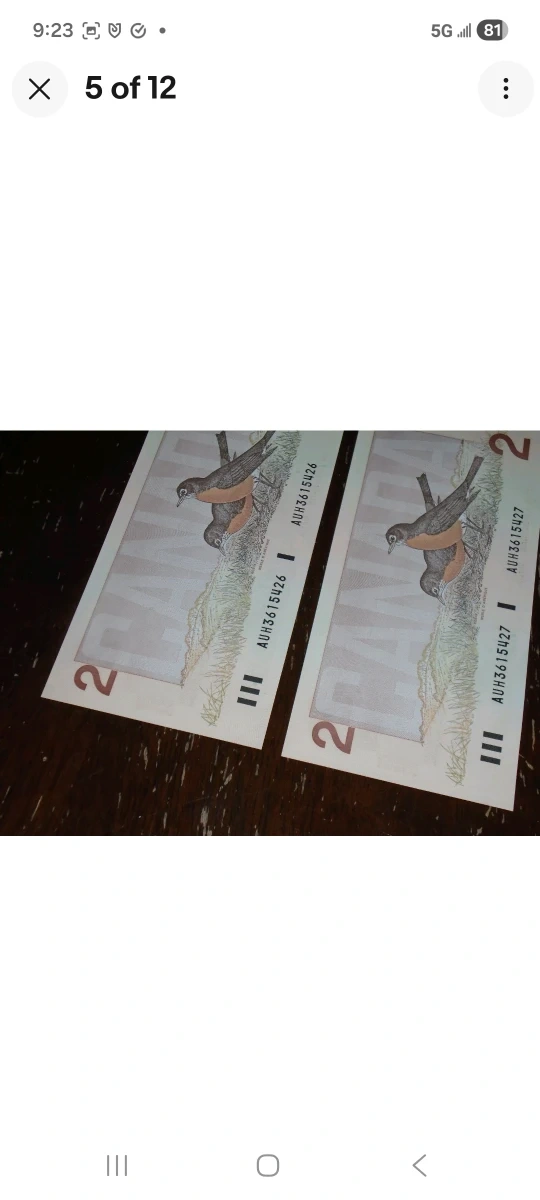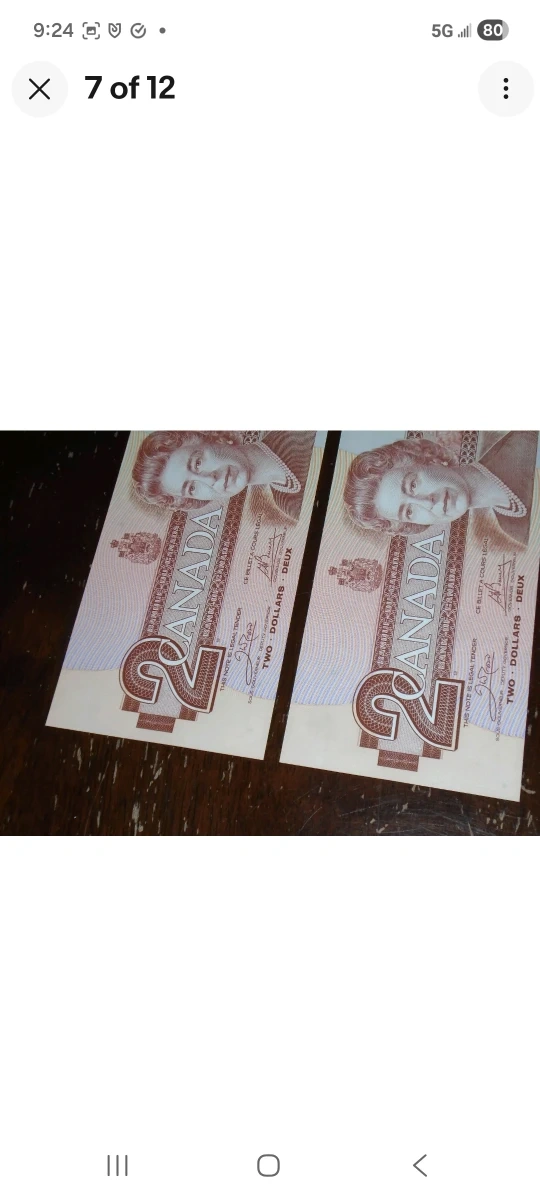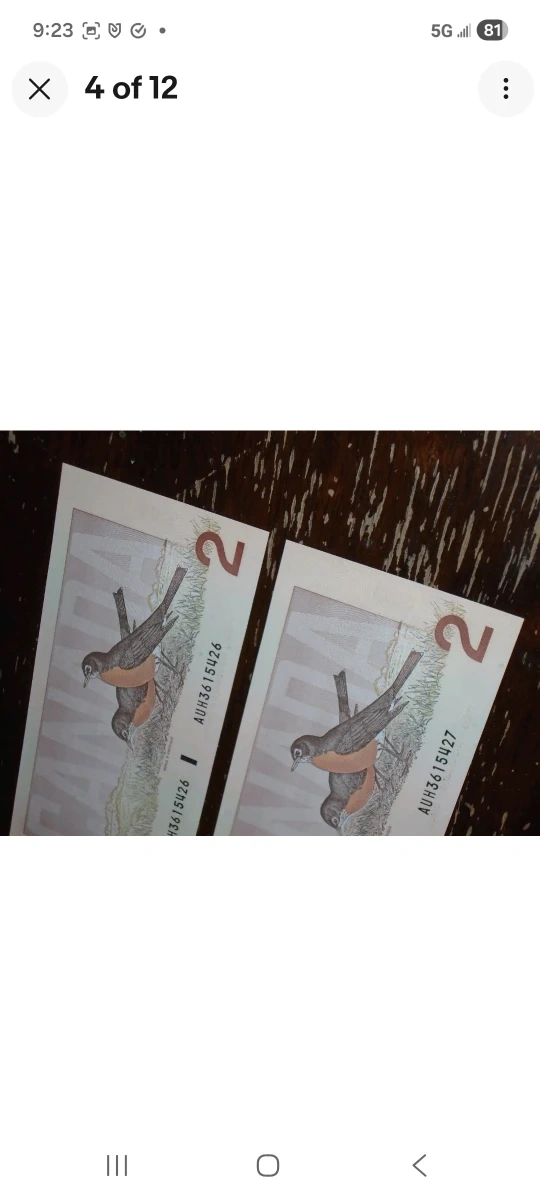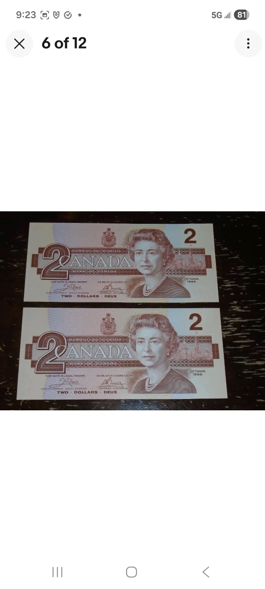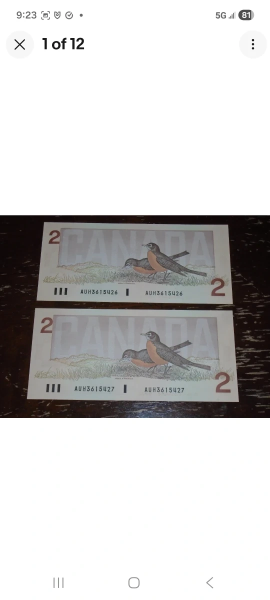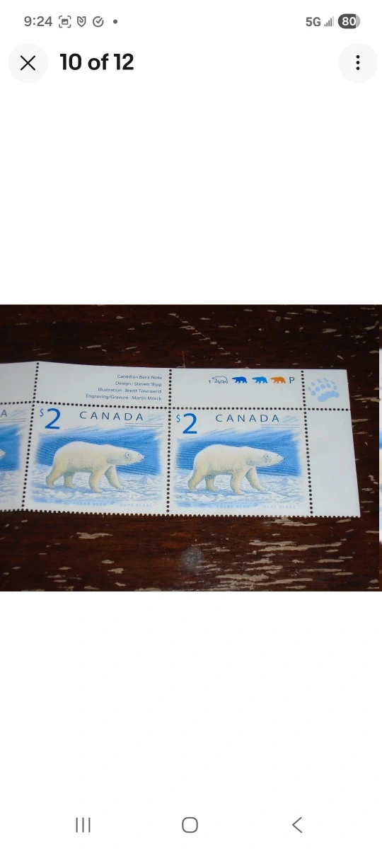 Selling consecutive print , Canadian $2 bills, with prefixes AUH & Crow-Bouey signatures. These are scarcer notes of the $2 variety and I will say they are uncirculated because they were never used and stored as seen here. You'll also get a bonus of two $2 polar bear stamps. Really cool really nice Artful beautiful historical set of notes and stamps! This set can be shipped Canada wide with tracking for an extra $20 worry-free. Enjoy this set!