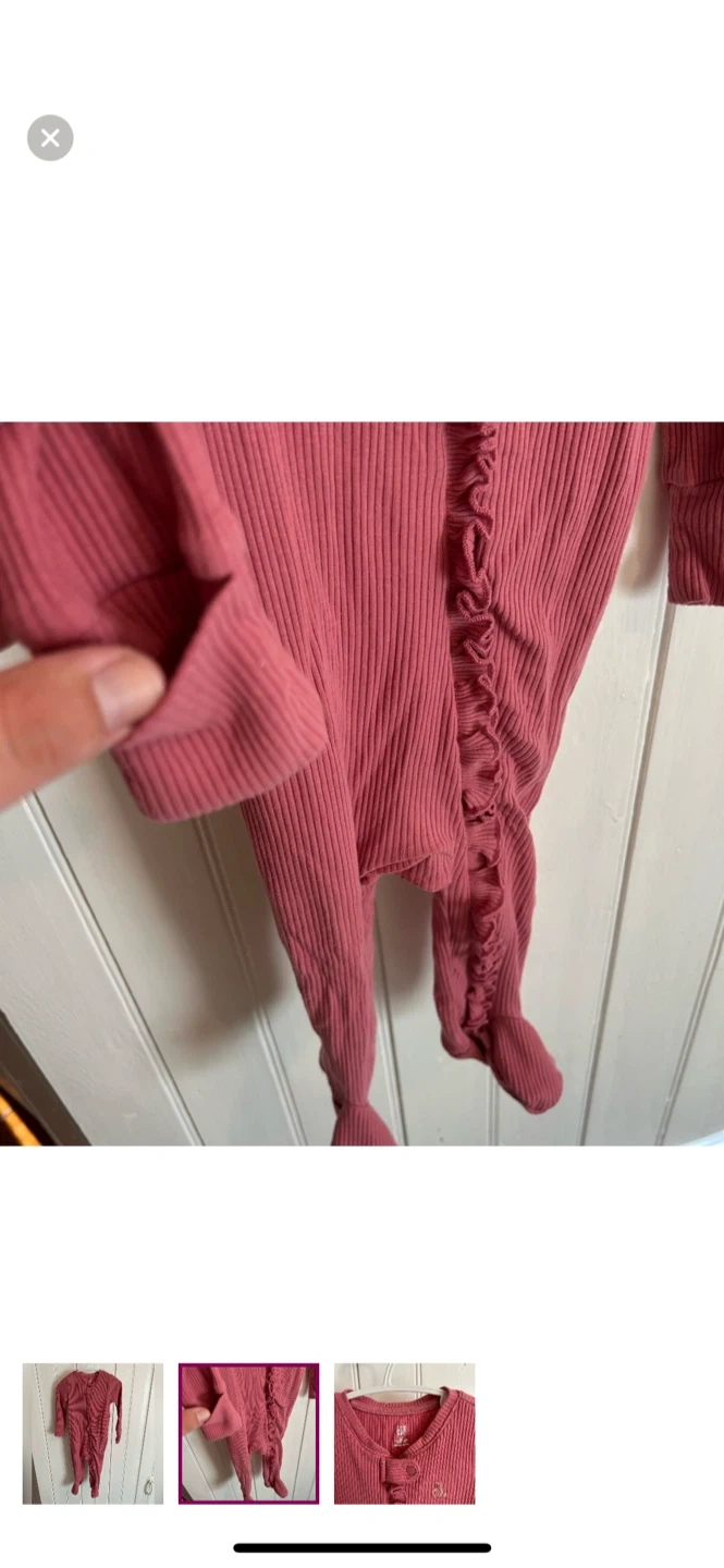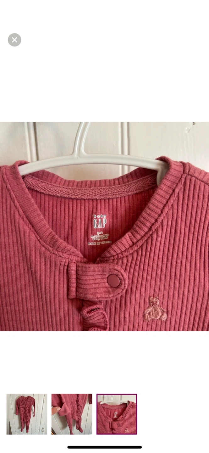 Gap brand. Zip up sleeper with fold over hands. Pink ribbed with ruffle along the zipper. Size 6/9m. brand new condition $8 Pickup Kincardine area or Peterborough but I can arrange delivery in port Elgin, walkerton-Durham, wingham-listowel-kw/cambridge/guelph, goderich-bayfield, & Arthur-Orangeville-Newmarket-Lindsay AREAS.