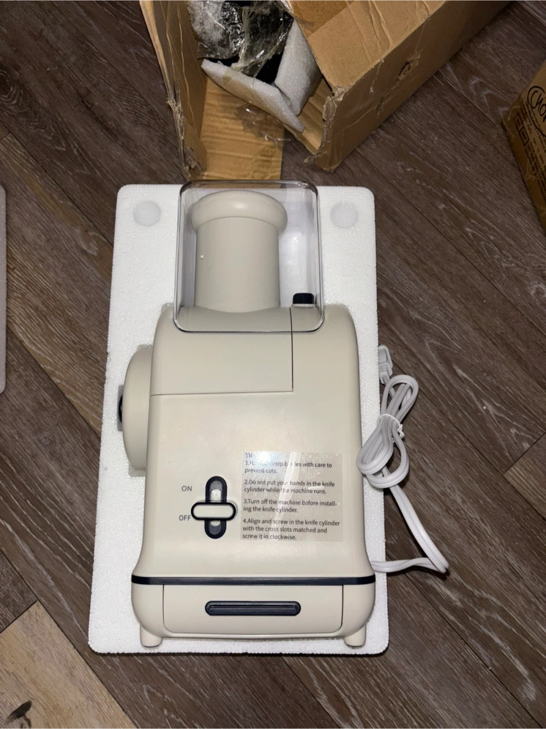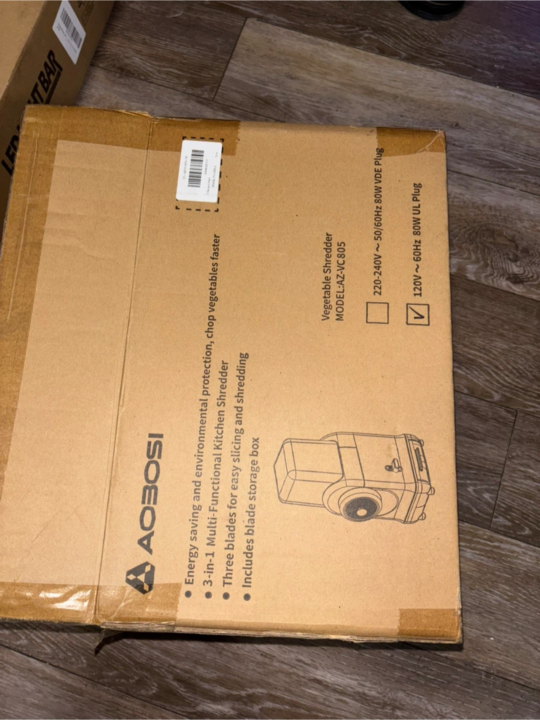 I'm selling an Aobosi vegetable shredder. It's a multi-functional kitchen shredder that makes slicing and shredding easy. It also includes a blade storage box and comes in the original box!