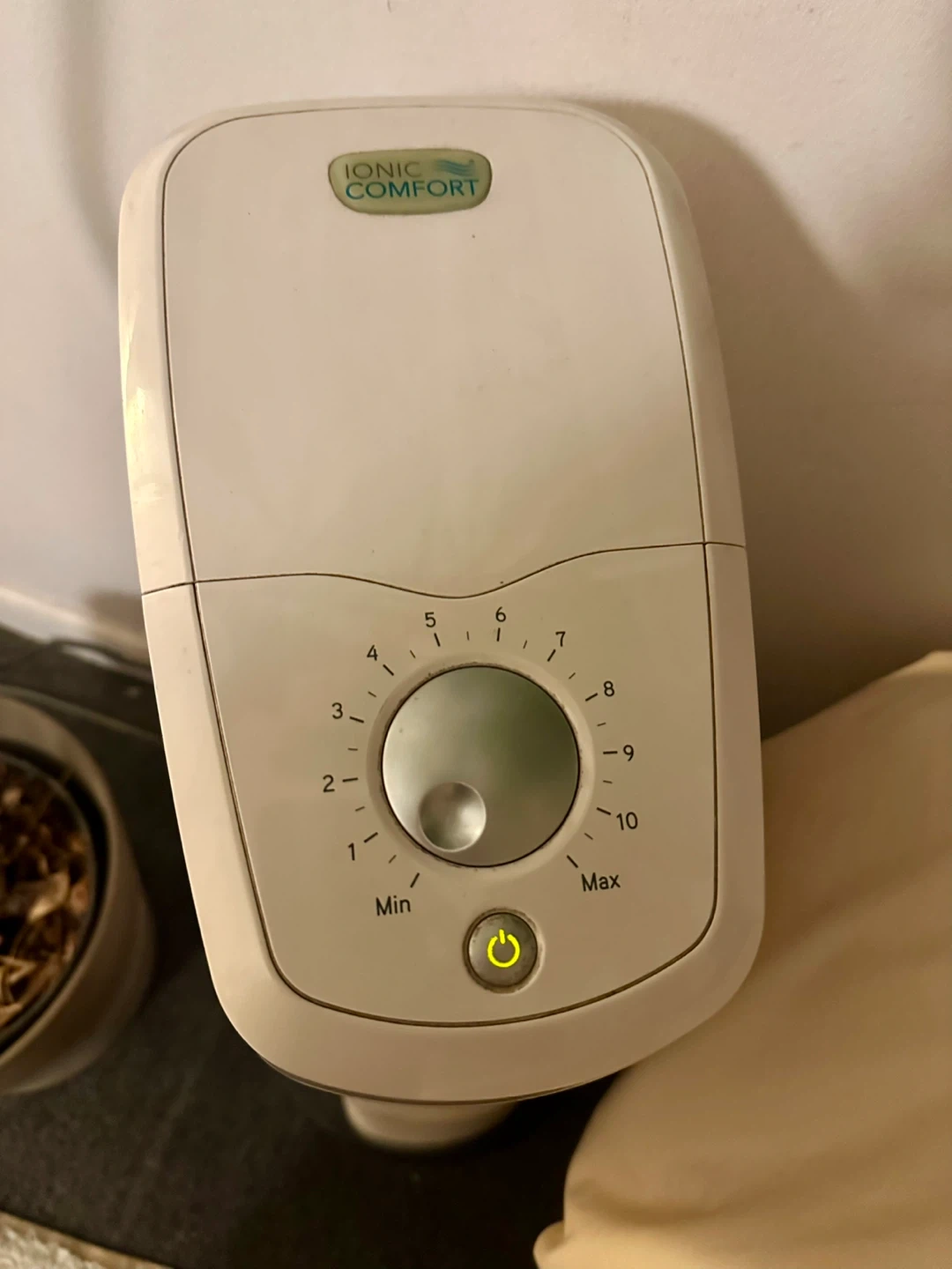 Selling an Ionic Comfort air purifier from Shaper Image. It's in good condition and ready to use! It has a dial to adjust the intensity, from Min to Max.