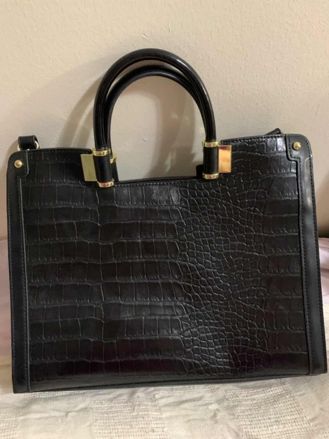 Black Croc-Embossed Tote Bag, brand new leather bag
