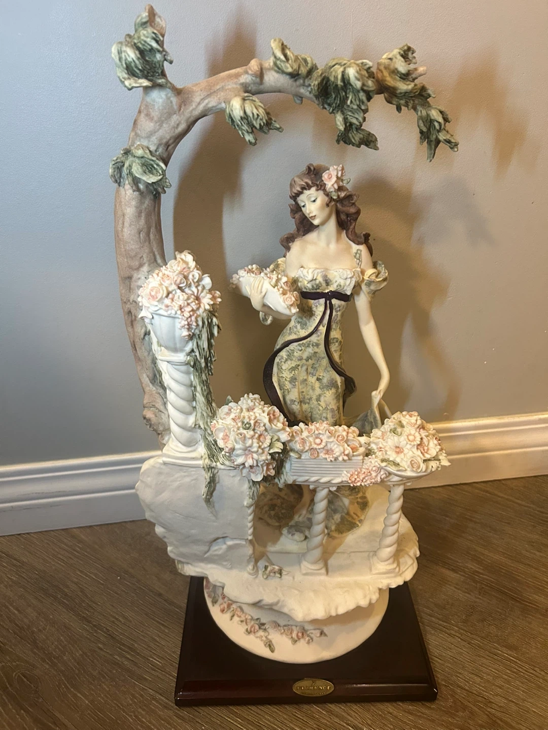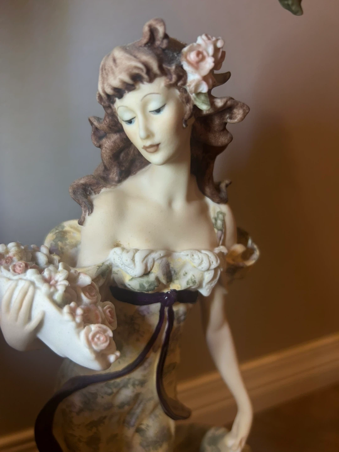 This is a beautiful Giuseppe Armani figurine featuring a woman with flowers. “The Flower Girl”