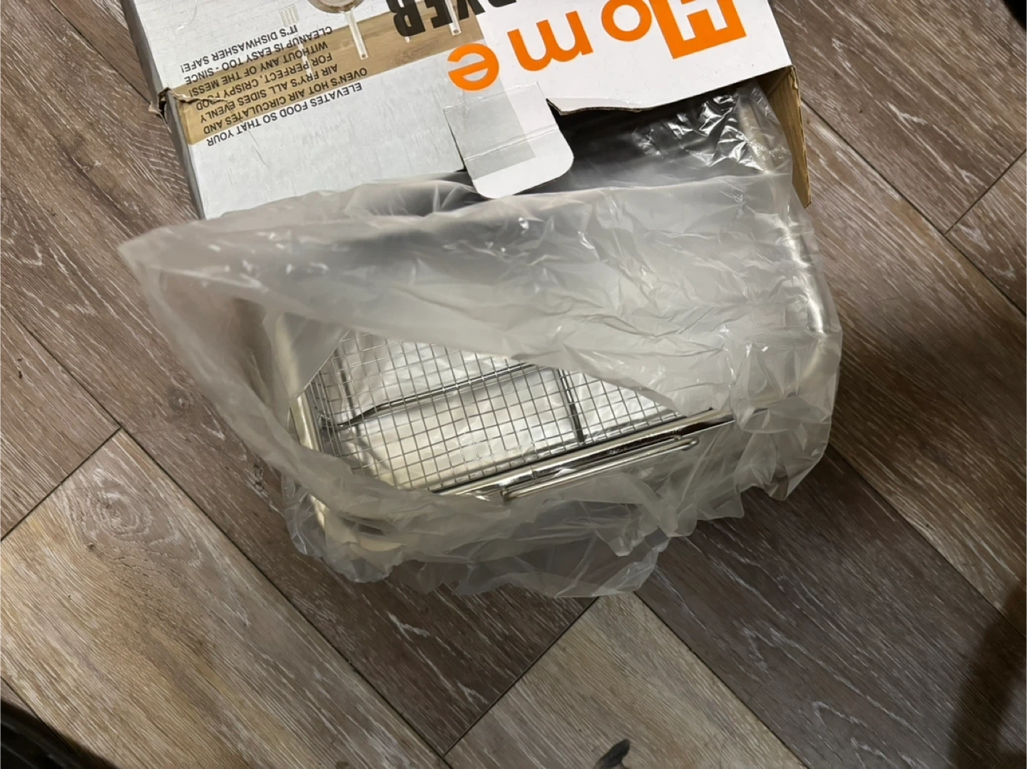 Selling a Home Oven Air Fryer set. This set elevates food so that your oven's hot air circulates and browns food evenly. It's perfect for crispy food without the extra oil. Cleanup is easy too since it's dishwasher safe! The set includes an oven air frying basket and an oven baking sheet. Comes with the box