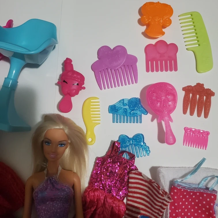 Hi, I'm selling a Barbie doll with many clothes, 2 chairs and several hairbrushes. $5 for everything or trade for similar value Meetups at or around eaton centre or parliament st and dundas st e.