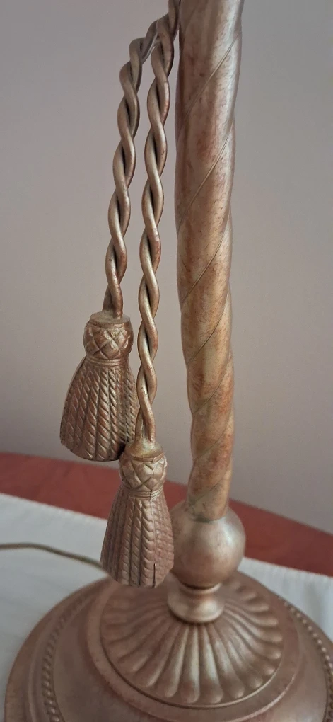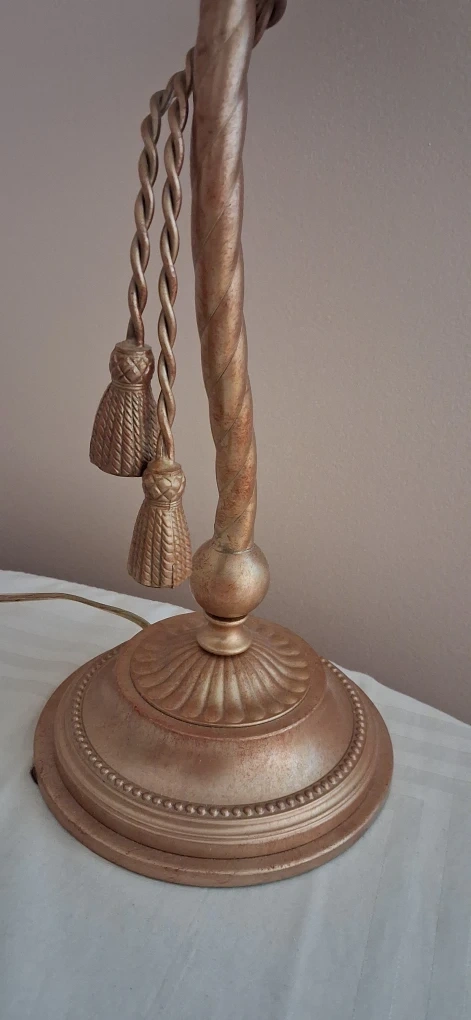 Selling a beautiful vintage-style table lamp. It features a speckled glass shade and an ornate gold-coloured base with decorative tassels. It would make a lovely addition to any room!