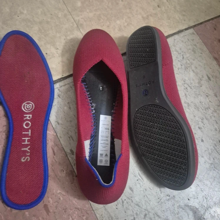 Selling a pair of Rothys The Point flats in size 6. They are in good condition and ready for a new owner. The colour is a lovely red, perfect for adding a pop of colour to any outfit!