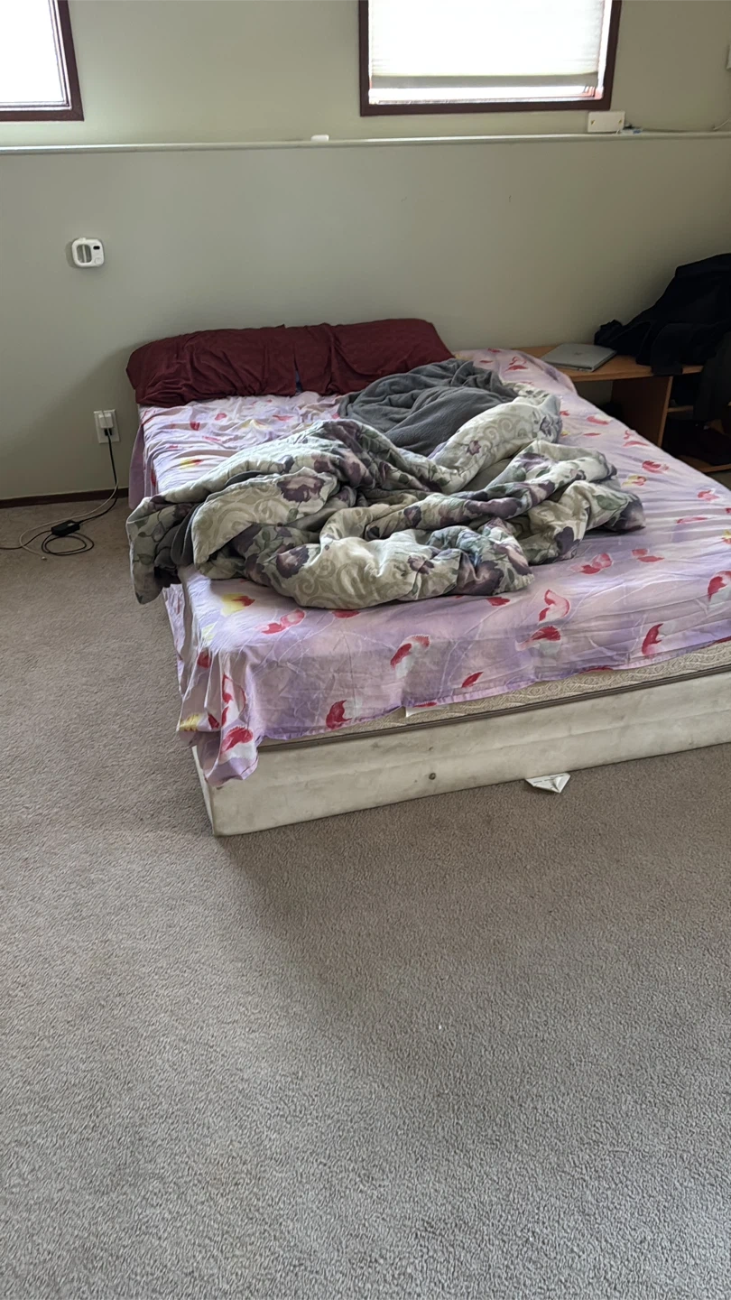 Selling a queen size bed with mattress in good condition. Very comfortable and perfect for anyone looking for an affordable setup.
