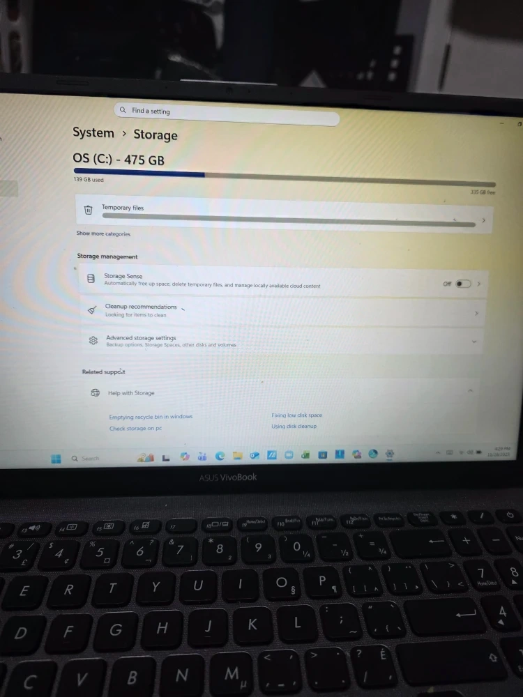 Selling an ASUS VivoBook laptop in good condition. It features an Intel Core i5 10th Gen processor, ErgoLift hinge, and NanoEdge display. It also has a USB Type-C port. The laptop has 475 GB of storage available