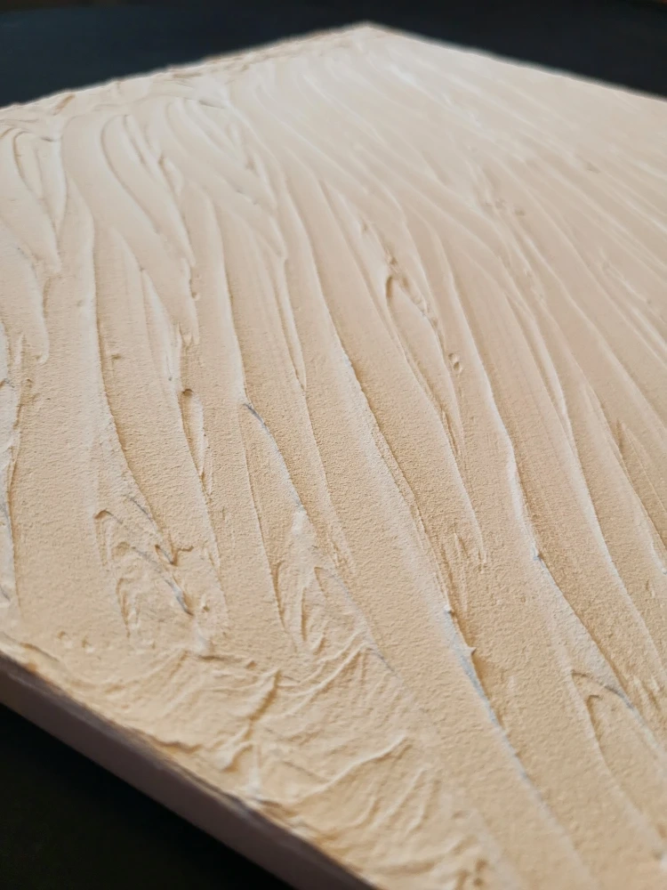 This is a textured art canvas with noticeable, layered detail that brings a lot of personality to a space. It’s lightly toned compared to my other piece, but still has its own unique style. The canvas is well-maintained (recently made) and perfect for decorating or adding your own touches. Art's size is 16" x 20" (40cm x 51cm).