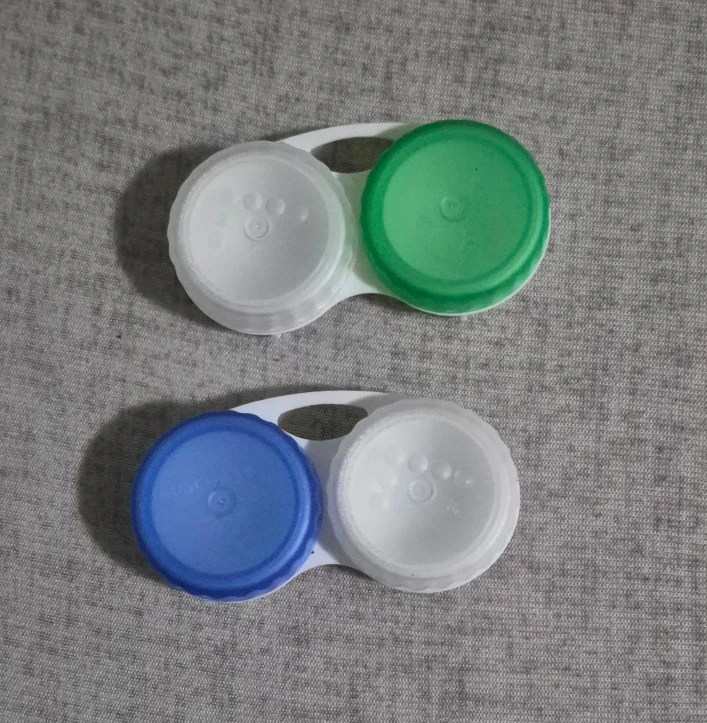 Two contact lens cases, one with a blue lid and one with a green lid! They're in great condition and ready to use