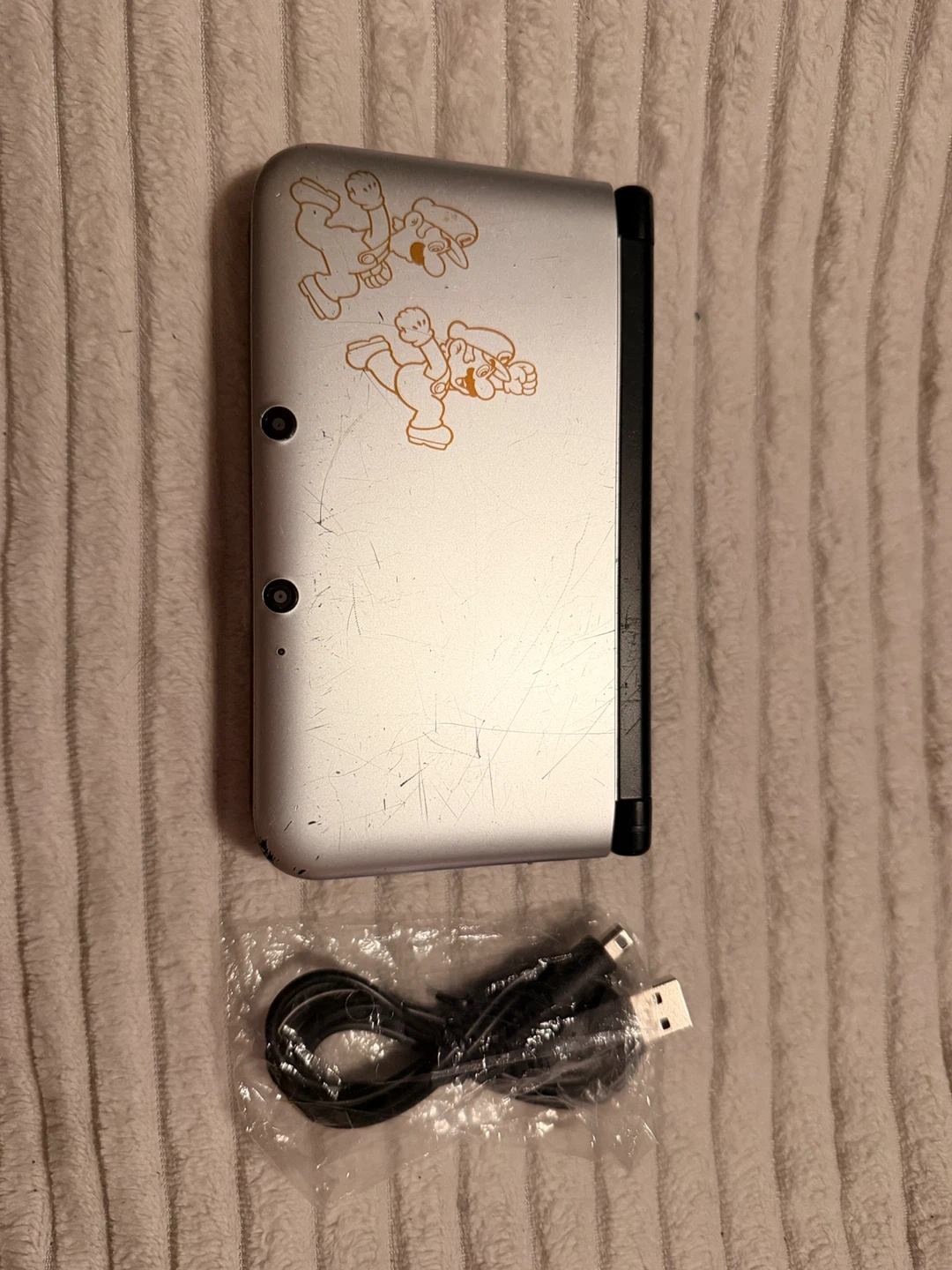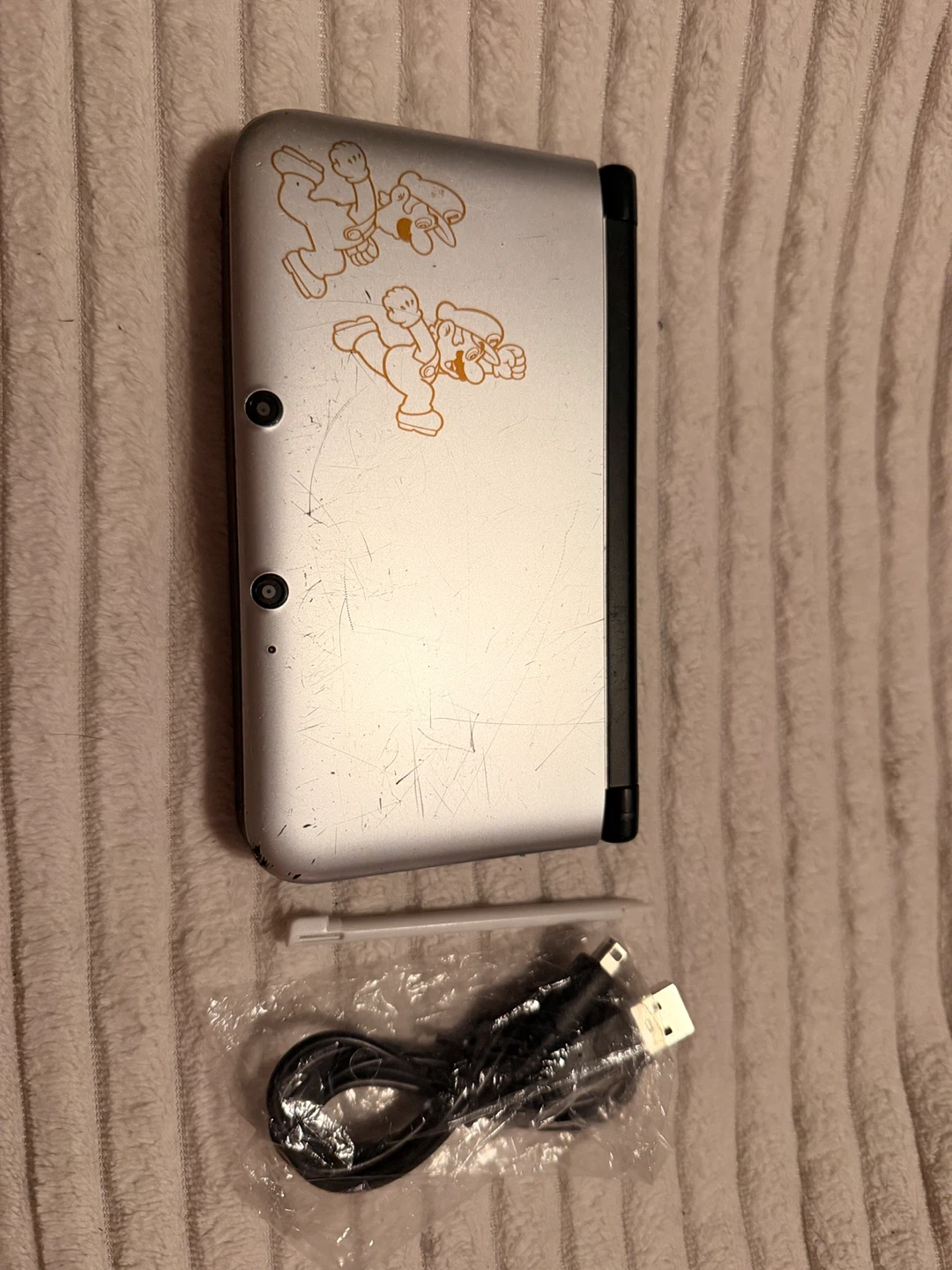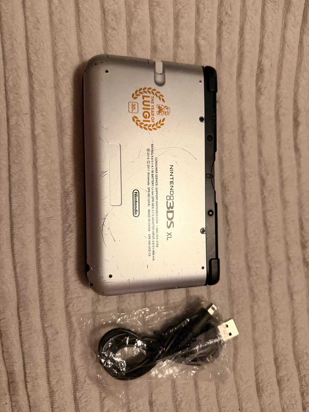 Selling a Nintendo 3DS XL in silver with Luigi edition design. It comes with a charger and stylus. There are some scratches on the back, but it is fully functional!
