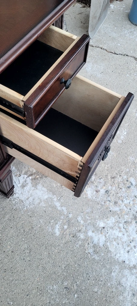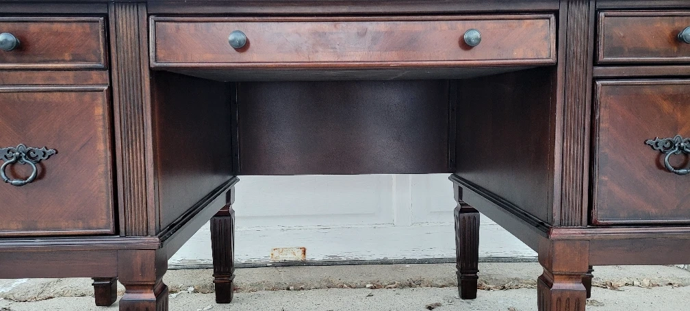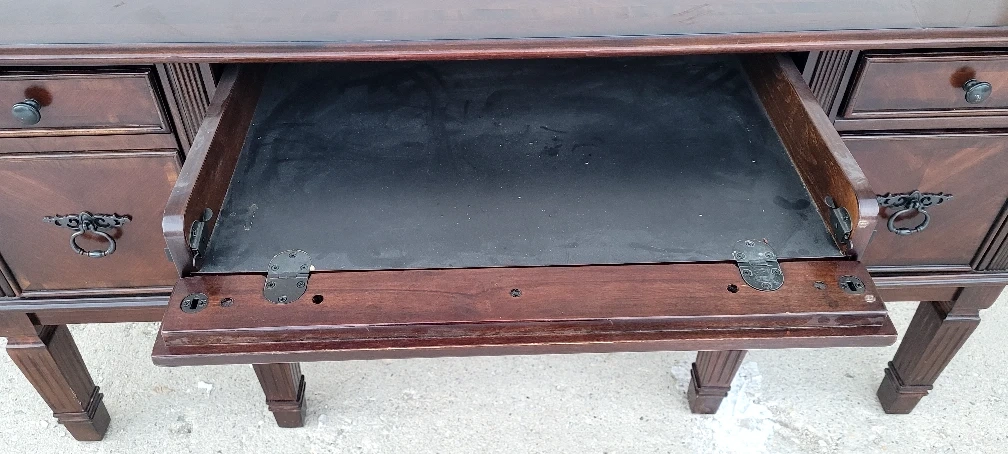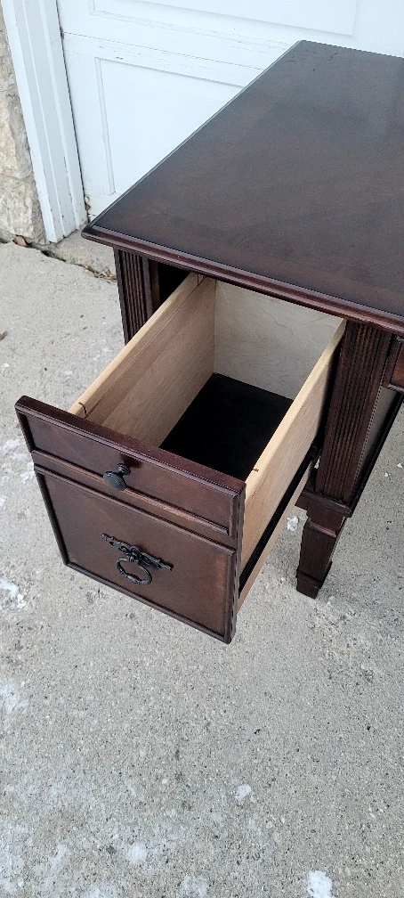 Hamlyn office desk. Retailed for $1200 + tax. Has a few scratches but otherwise in good condition. Just taken outside for the picture, stored indoors.