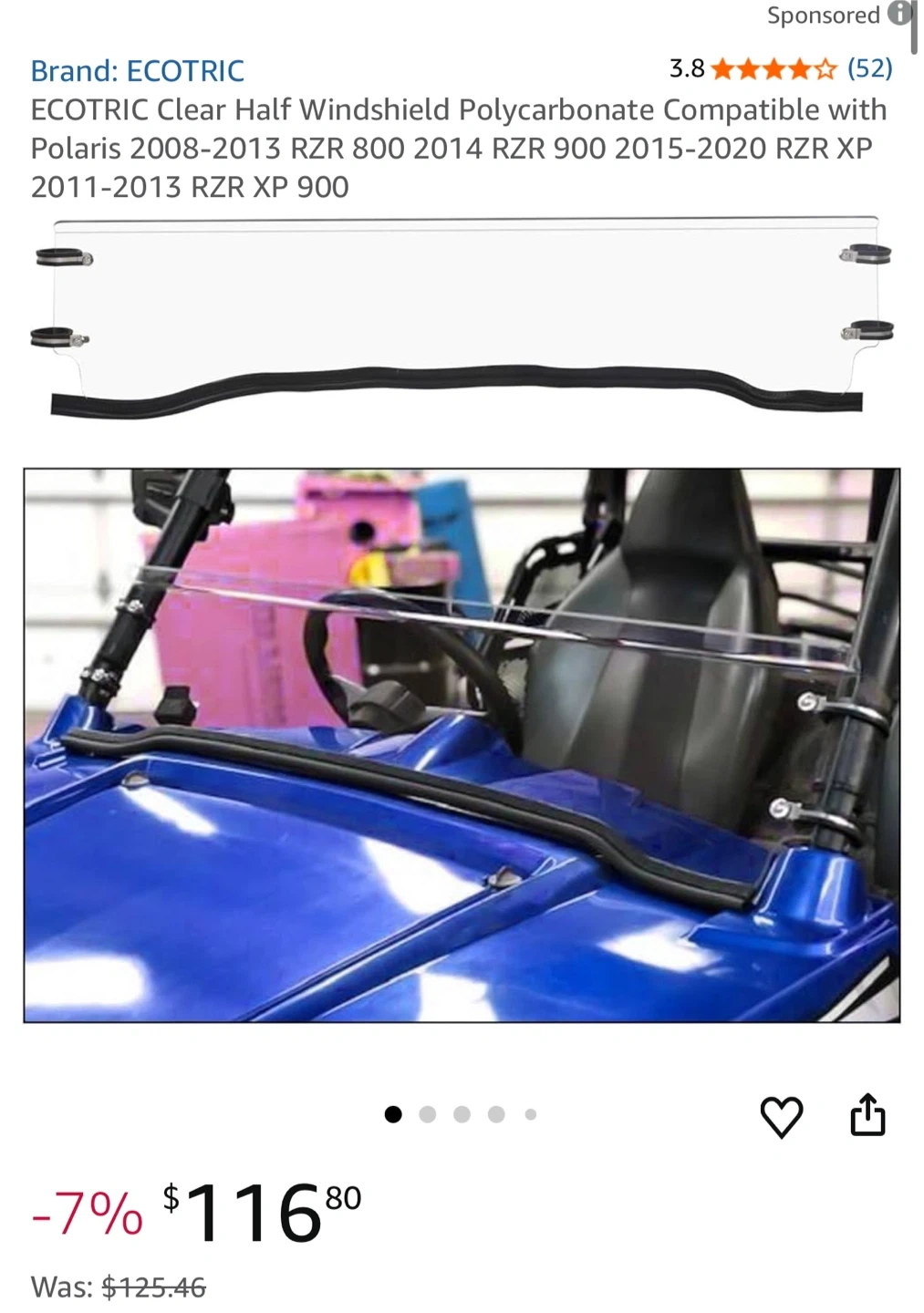 AURELIO TECH Clear UTV Half Windshield for 2020 RZR 900, S 1000, 14-18 Polaris XP 1000, XP4 1000, 15-18 900, S900, XC900, 1000, 16-18 XP Turbo