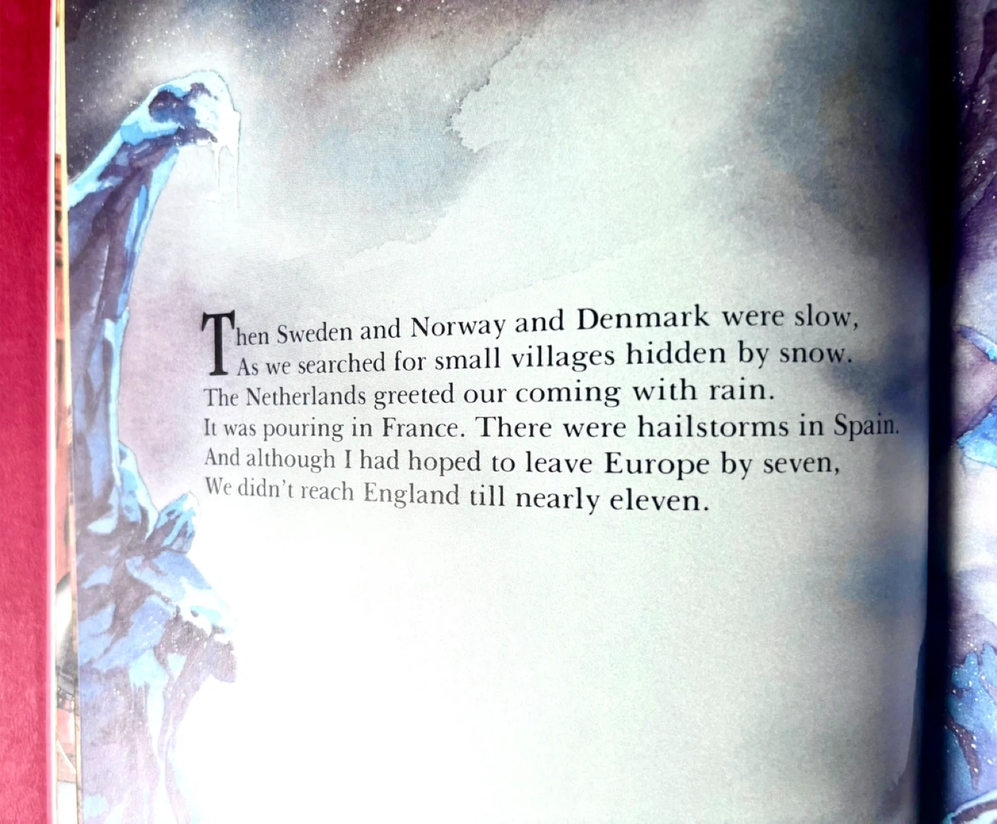 It's a charming book that relates in delightful rhyming verse how Santa travels around the world delivering presents.