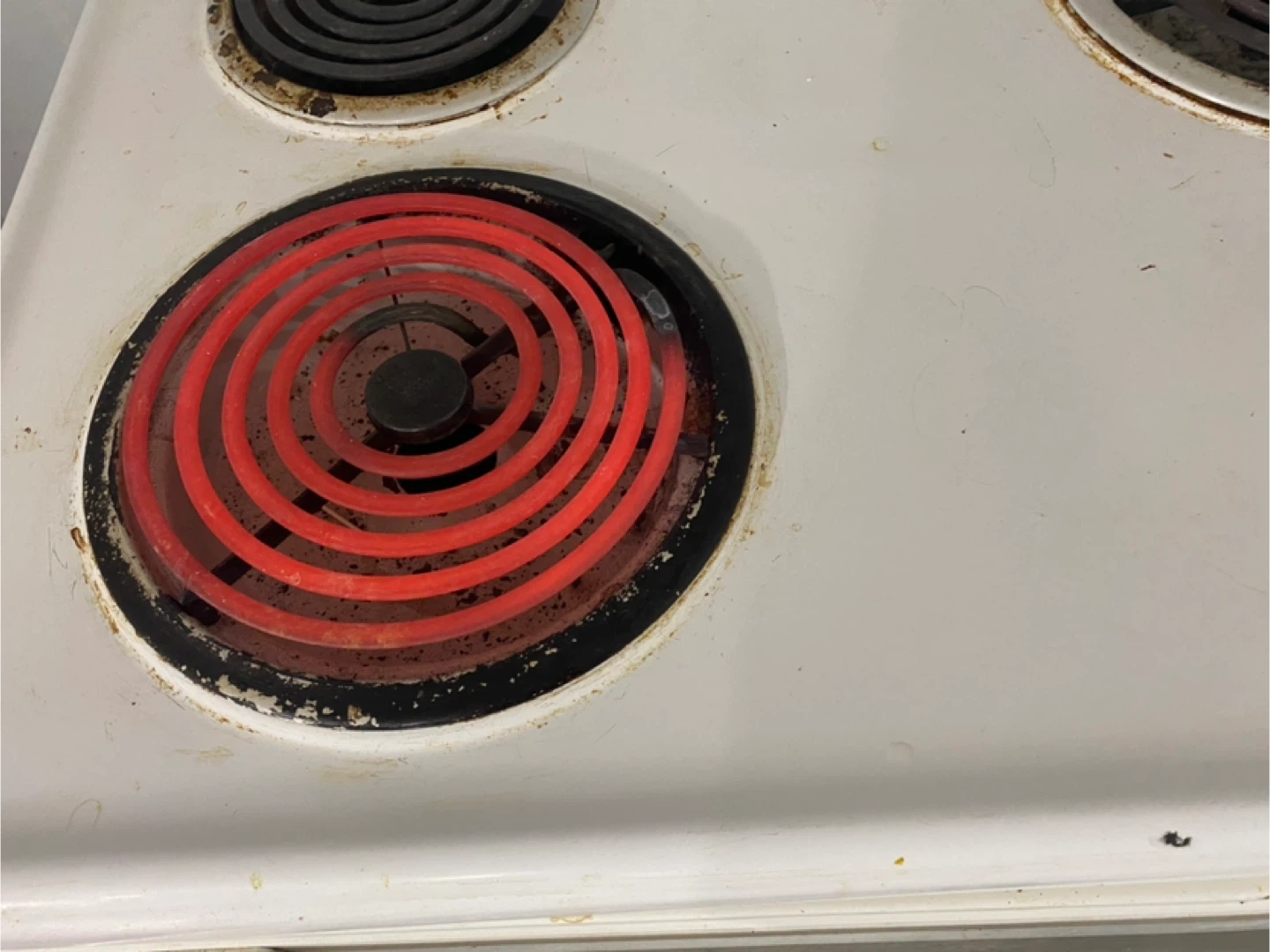 Selling a Kenmore electric coil top range. It has four burners and is white. There are some signs of use, but overall it's in decent shape