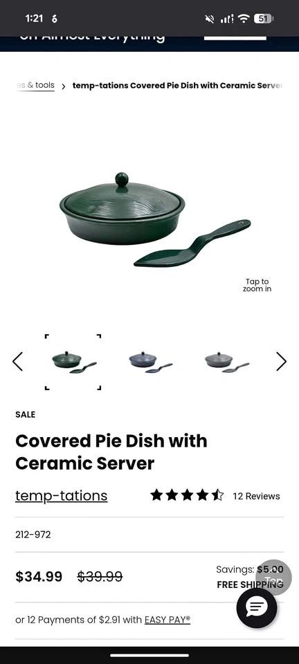 Still in box, new Covered Pie Dish with Ceramic Server - Woodland Emerald from Temptations ®