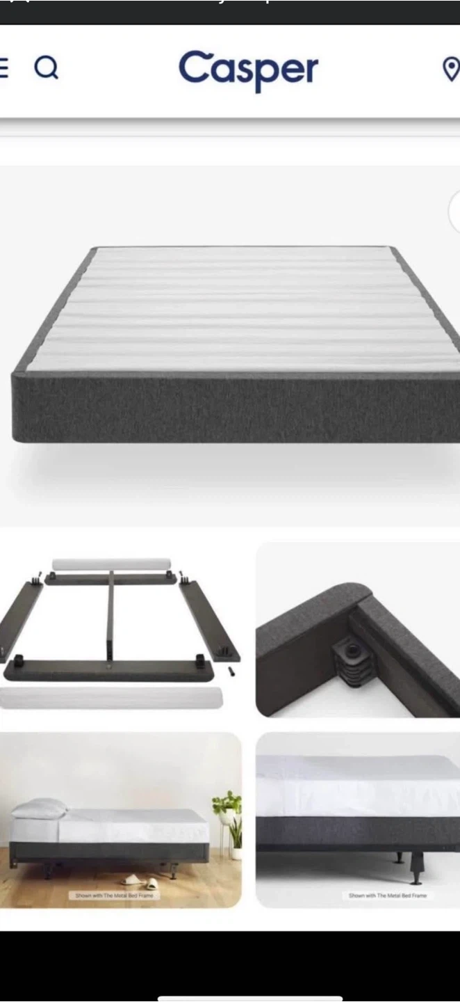 Selling a Casper Foundation bed frame! It's in great condition and comes with the original box. All components are included for easy assembly. Perfect for supporting your mattress and giving your bedroom a clean, modern look.