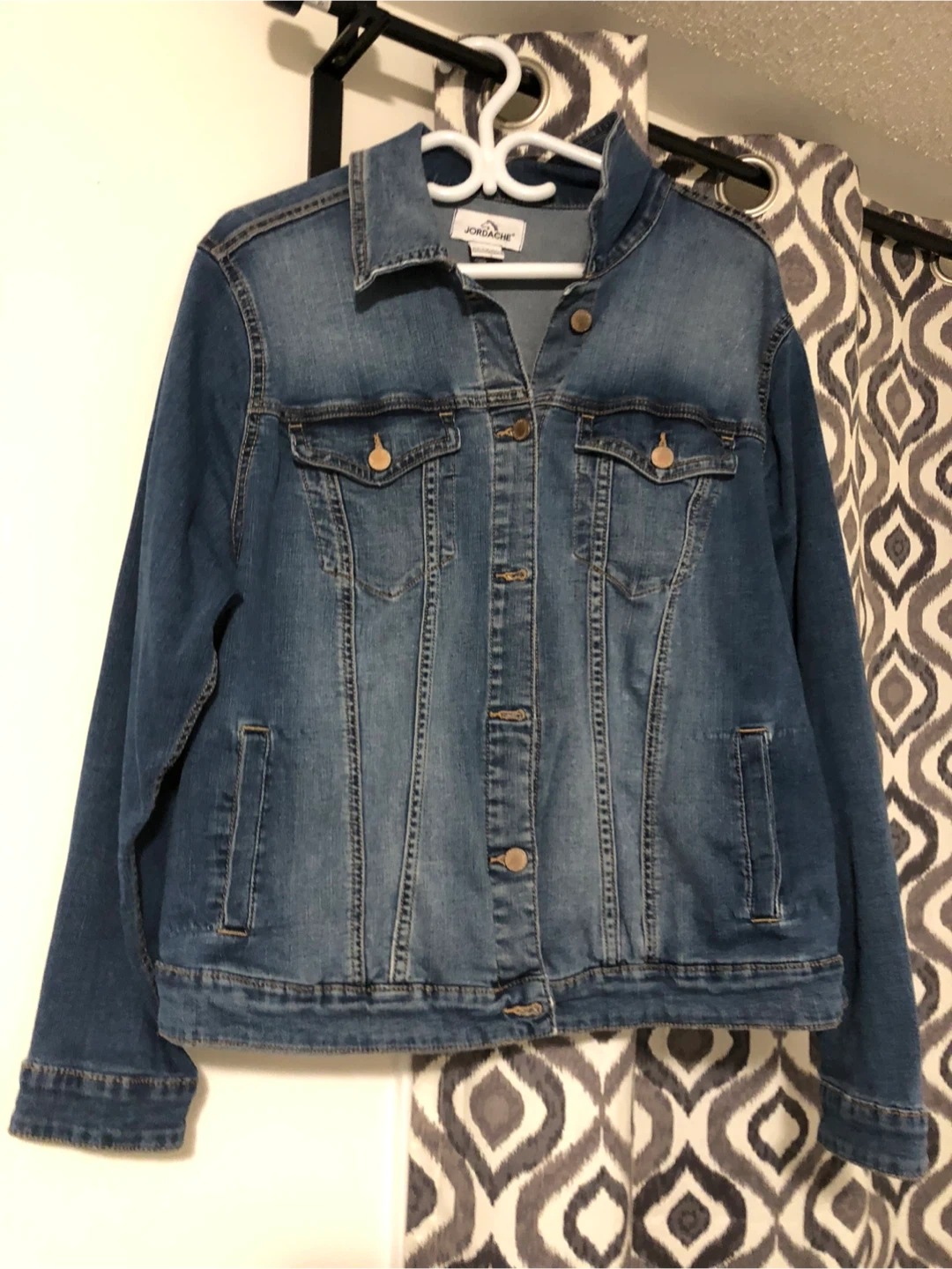 Here's a Jordache denim jacket! It's a classic piece that can go with just about anything. Perfect for layering or wearing on its own