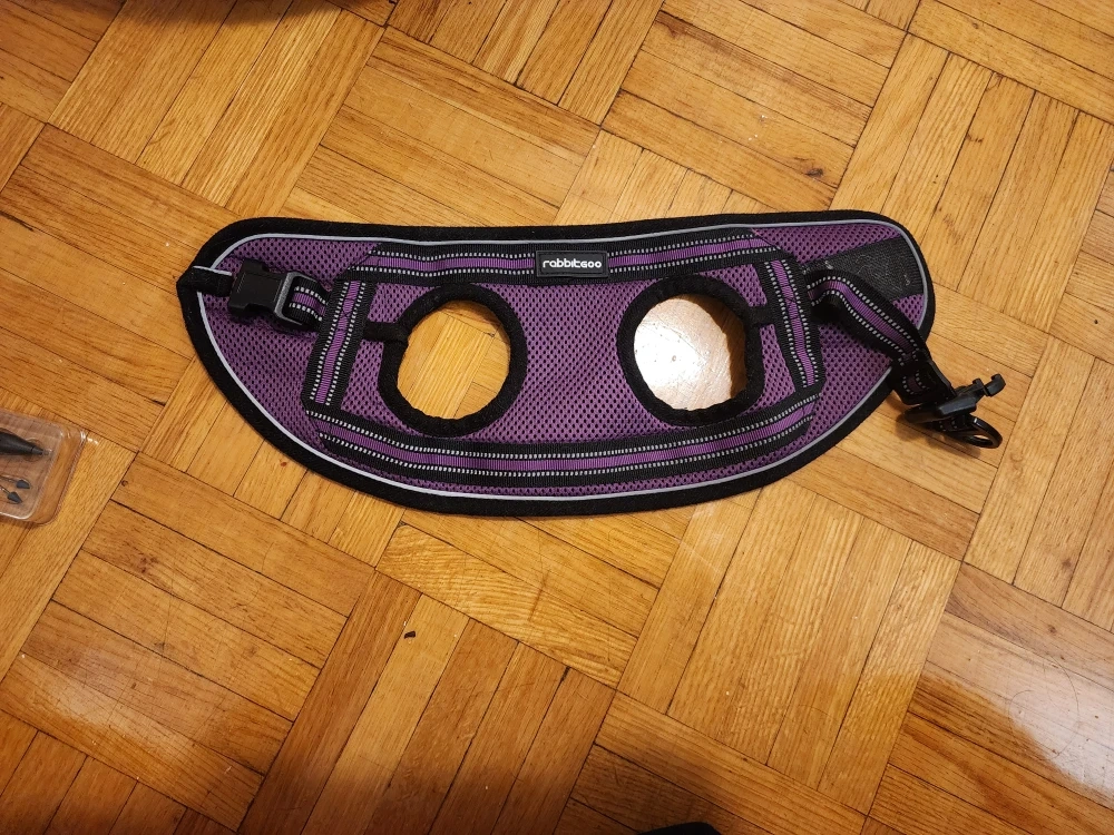 Selling a Rabbitgoo rabbit harness in purple! It's used but too small for my cat so I bought a bigger one. Refer to 2nd photo for size. Cat not included