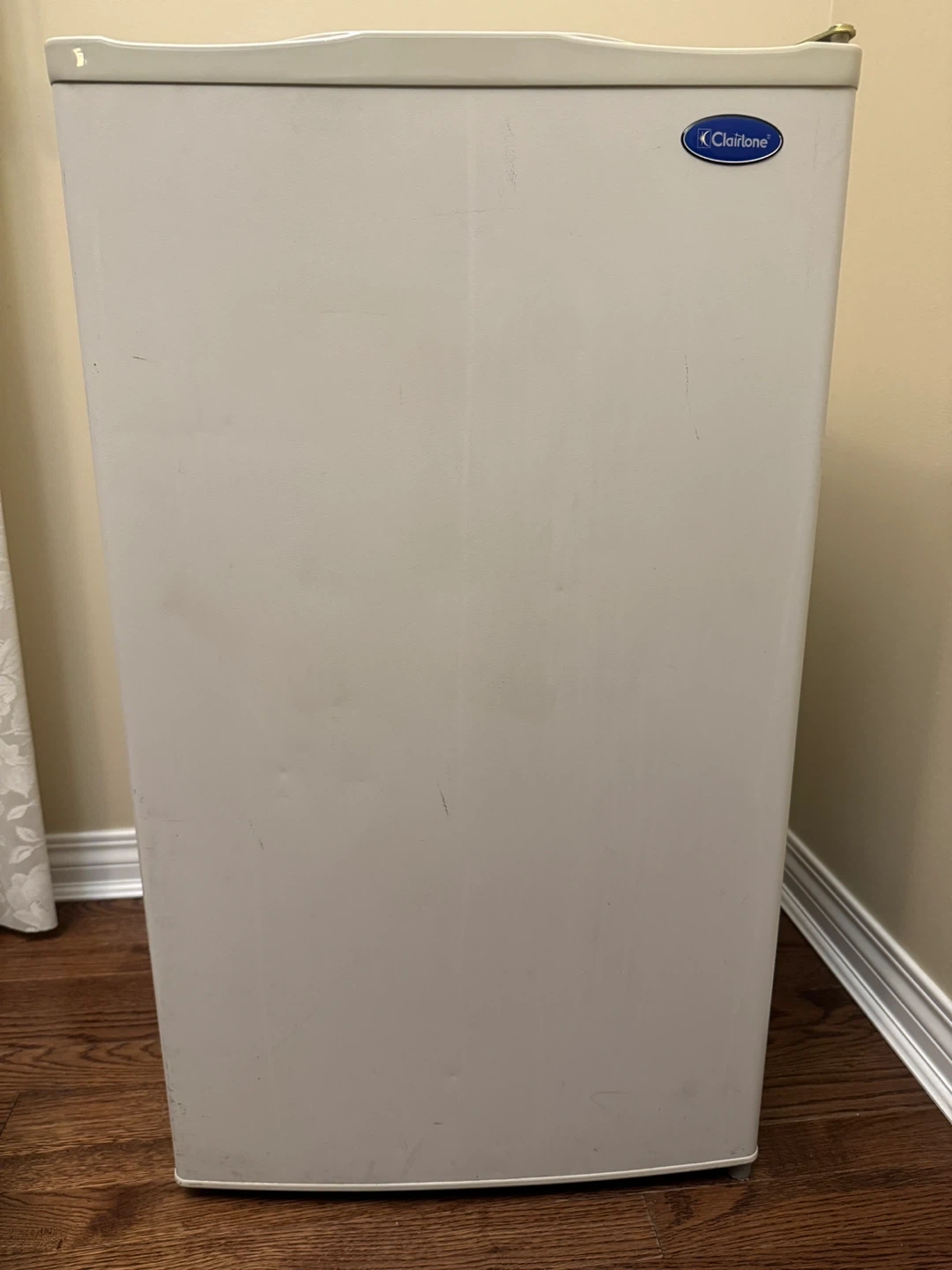Selling a Clairtone compact fridge in white. It's in good condition and perfect for a small space like a dorm or apartment