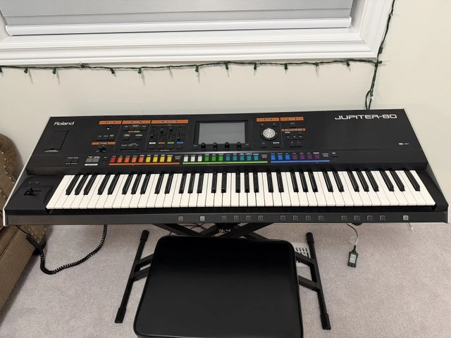 Selling my Roland Jupiter 80. This is an absolute powerhouse of a synthesizer featuring Roland’s acclaimed SuperNATURAL sound engine. It delivers massive, stacked sounds and realistic acoustic instrument emulations that still hold up against modern boards. Condition: