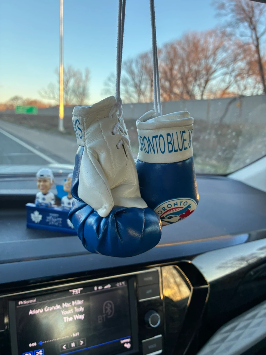 Show your team spirit with these Toronto Blue Jays boxing glove car mirror hangers! They're a fun way to support your favourite team while adding a touch of personality to your ride