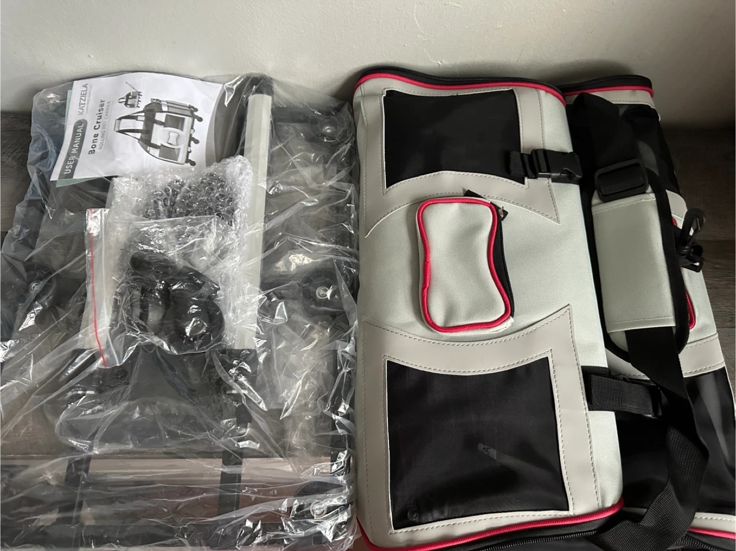 Selling a brand new Katziela Bone Cruiser Pro rolling pet carrier with pet bed! This airline-approved carrier is perfect for travelling with your furry friend. It features: