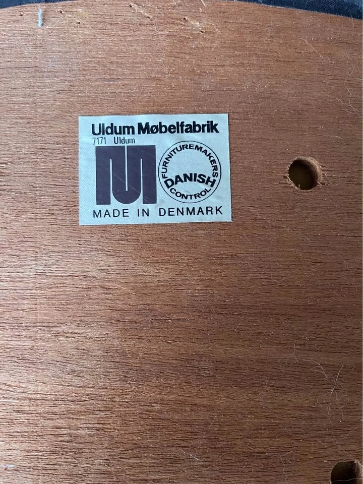 Nice high back vintage chair by Danish designer Johannes Andersen. Manufactured by Uldum Mobelfabrik. Reupholstered seat and back with deep green faux leather. Chairs are sturdy and good vintage condition. Selling as set of 4. ($500 for the set)