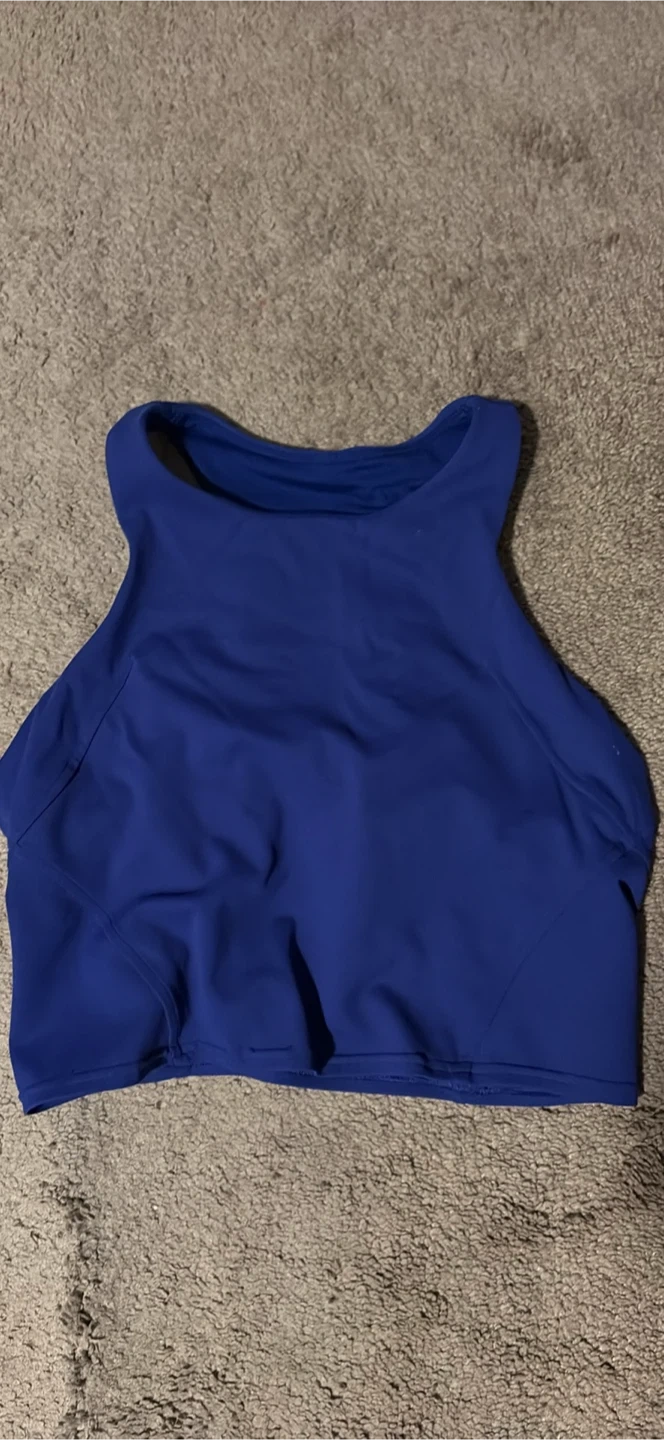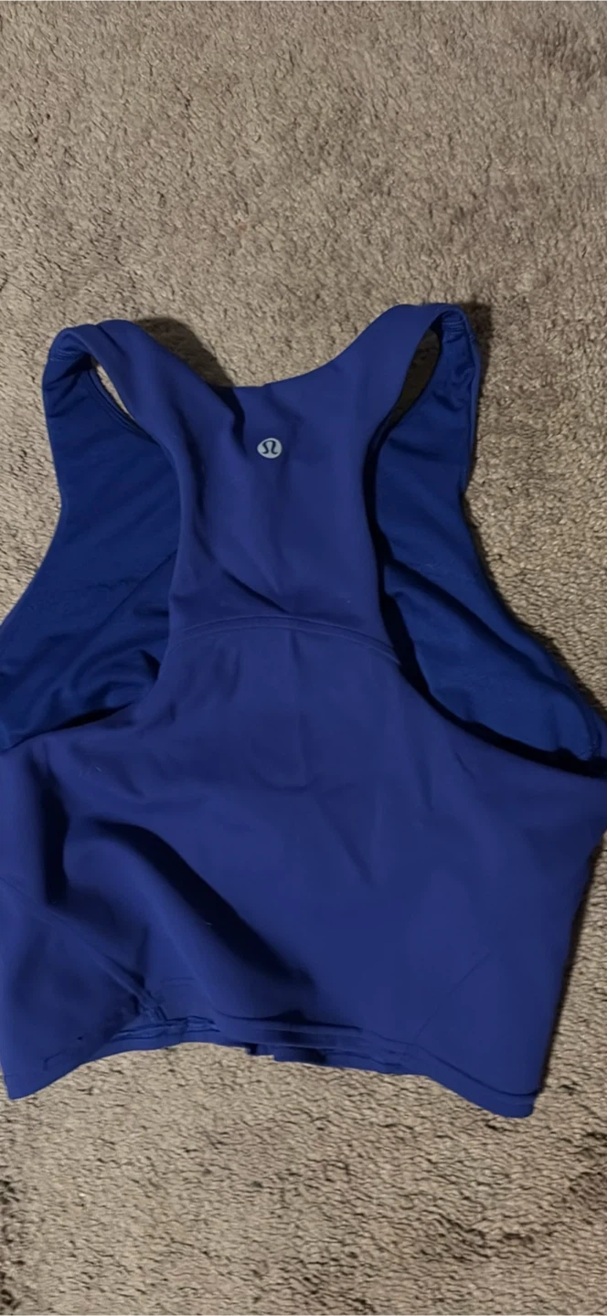 Selling a Lululemon sports bra in a lovely blue colour! It's in great condition and ready for your next workout or yoga session. The bra has a racerback design and is super comfy