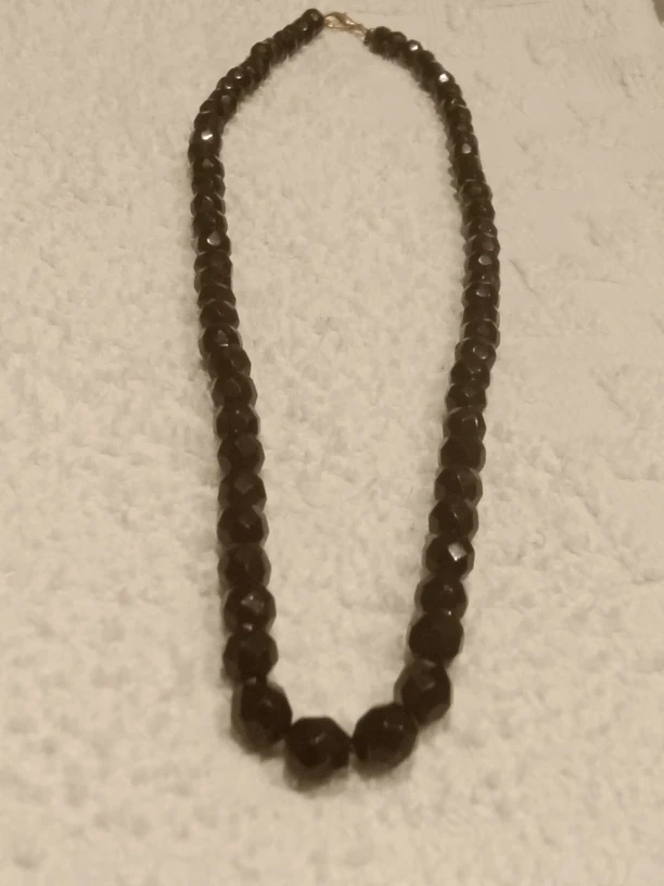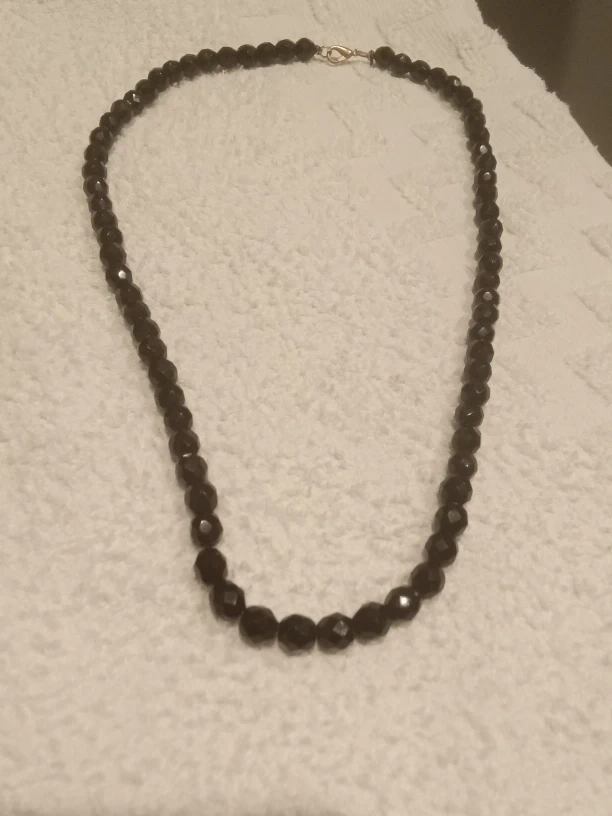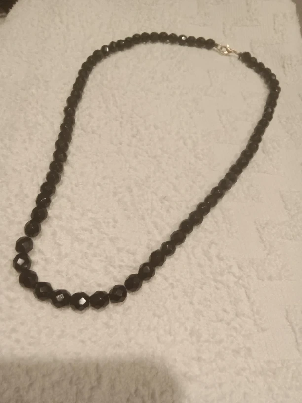 Beautiful Necklace Sparkles like diamonds , Super Comfortable to wear as well.possibility of being Black Onyx, and Black Spinel.