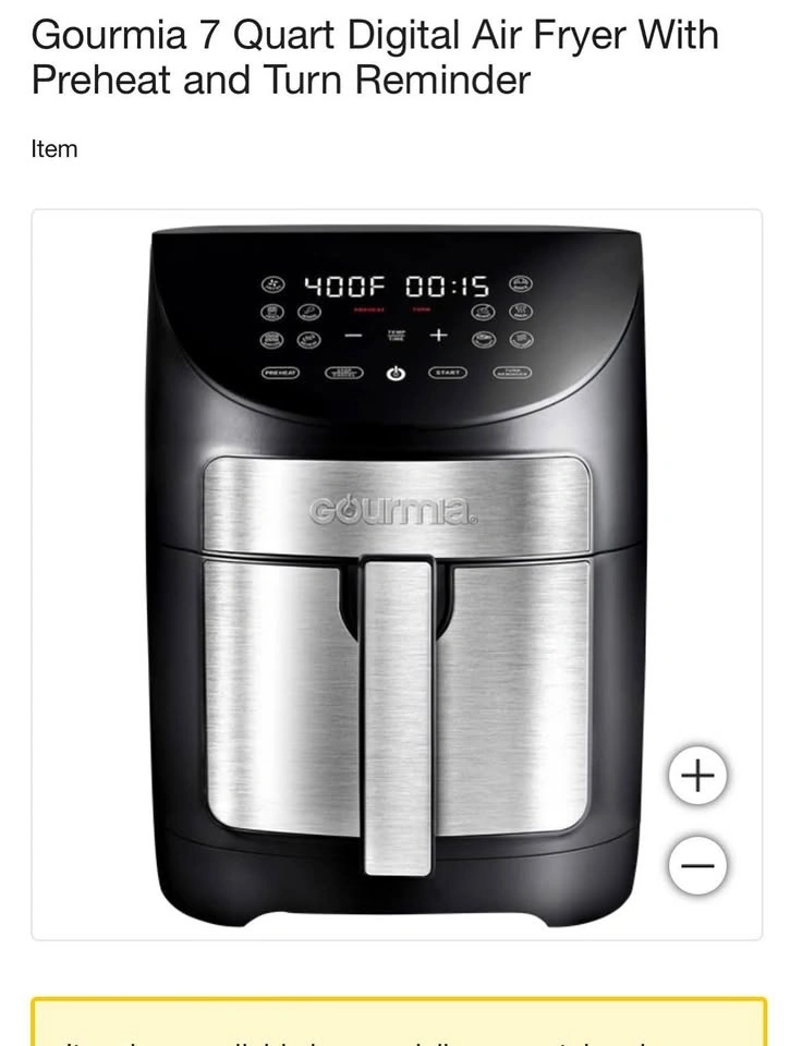 Buy & SellGourmia 7 Quart Digital Air FryerGourmia 7 Quart Digital Air Fryer$20Functions well, got a new one after Black Friday.WHERE TO MEETCheck LocationView MapSELLERKate8651 Westminster Hwy150 reviews1 chats·1 favorites·10 views