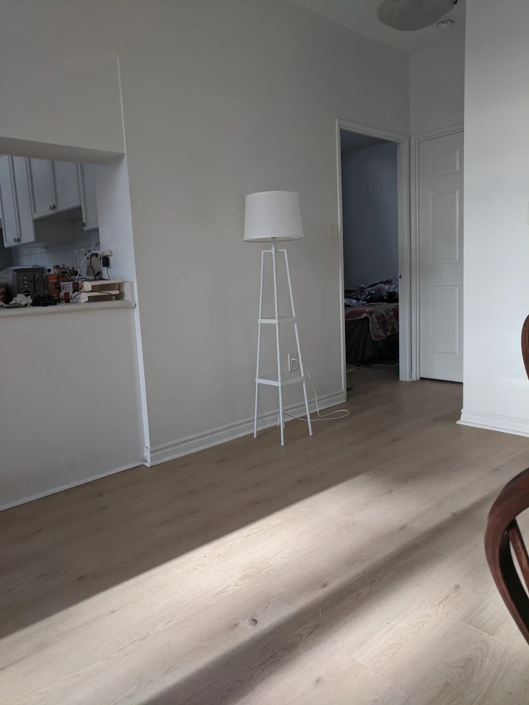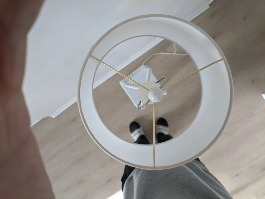 Selling a white floor lamp with built-in shelves! It's in great shape and would be perfect for adding some light and storage to any room.