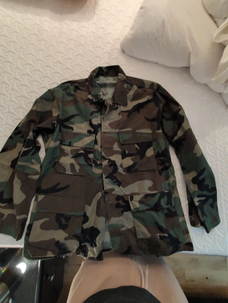 Selling a camouflage jacket with a classic pattern! It's in good condition, perfect for outdoor activities or adding a unique touch to your wardrobe