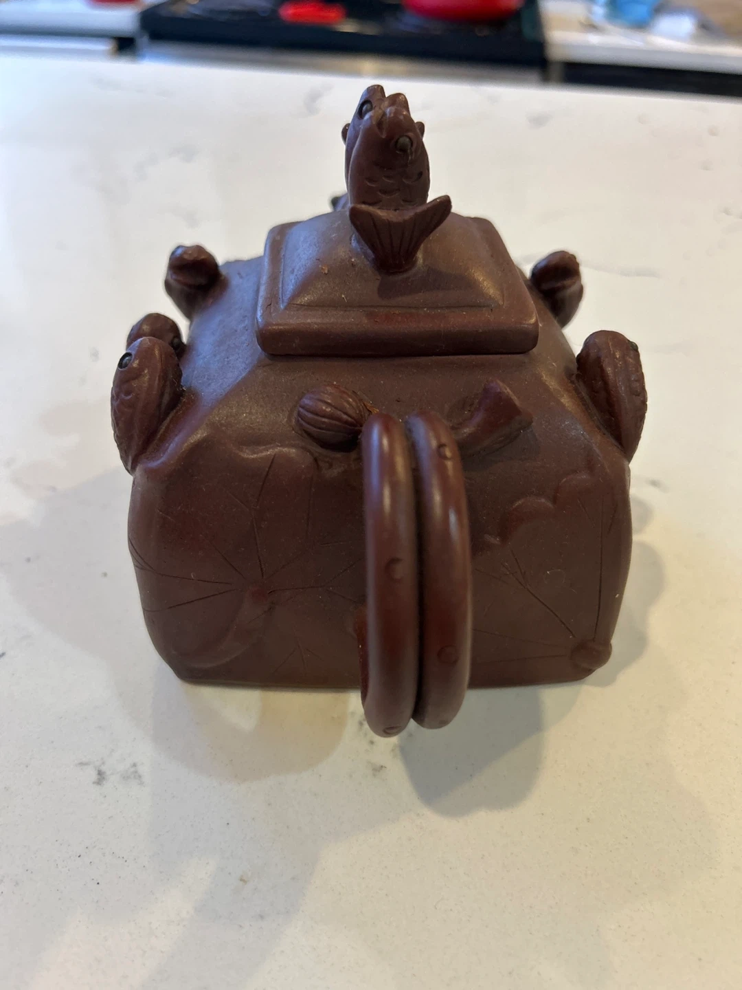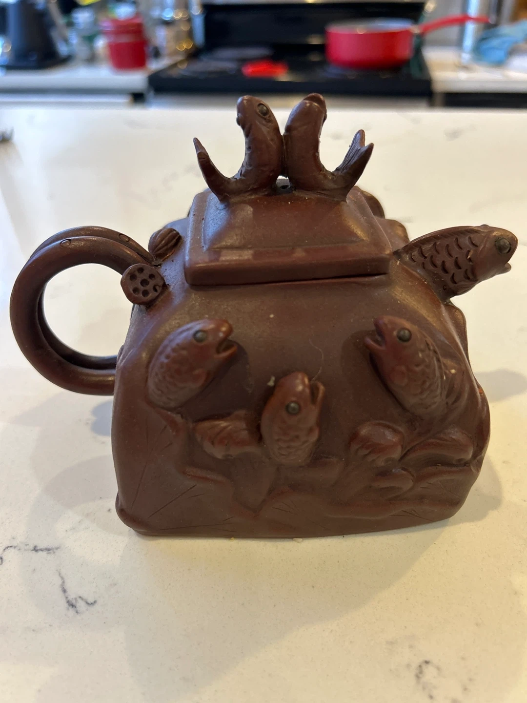 Buy & SellUnique Chinese Brown Clay Fish TeapotUnique Chinese Brown Clay Fish Teapot$25Selling a unique brown clay teapot. It has a square opening and is adorned with fish designs. This is a very unique piece!ConditionGoodWHERE TO MEETEast HarlemView MapSELLERverifiedBreEast Harlem700 reviews0 chats·0 favorites·12 views