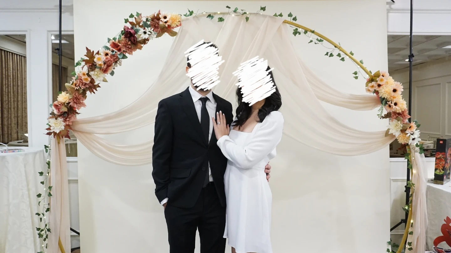 Floral Decor and Drapes for a Wedding Arch