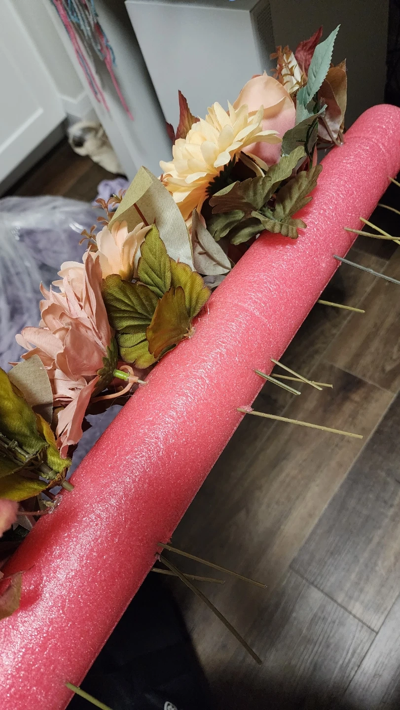 Selling floral decorations and drapes for a wedding arch. It's perfect for adding a touch of elegance to your special day. The floral decor is hot glued to pool noodles that you wrap around an arch pole and tie to secure. The 2 drapes are champagne coloured, each one is 20ft long.