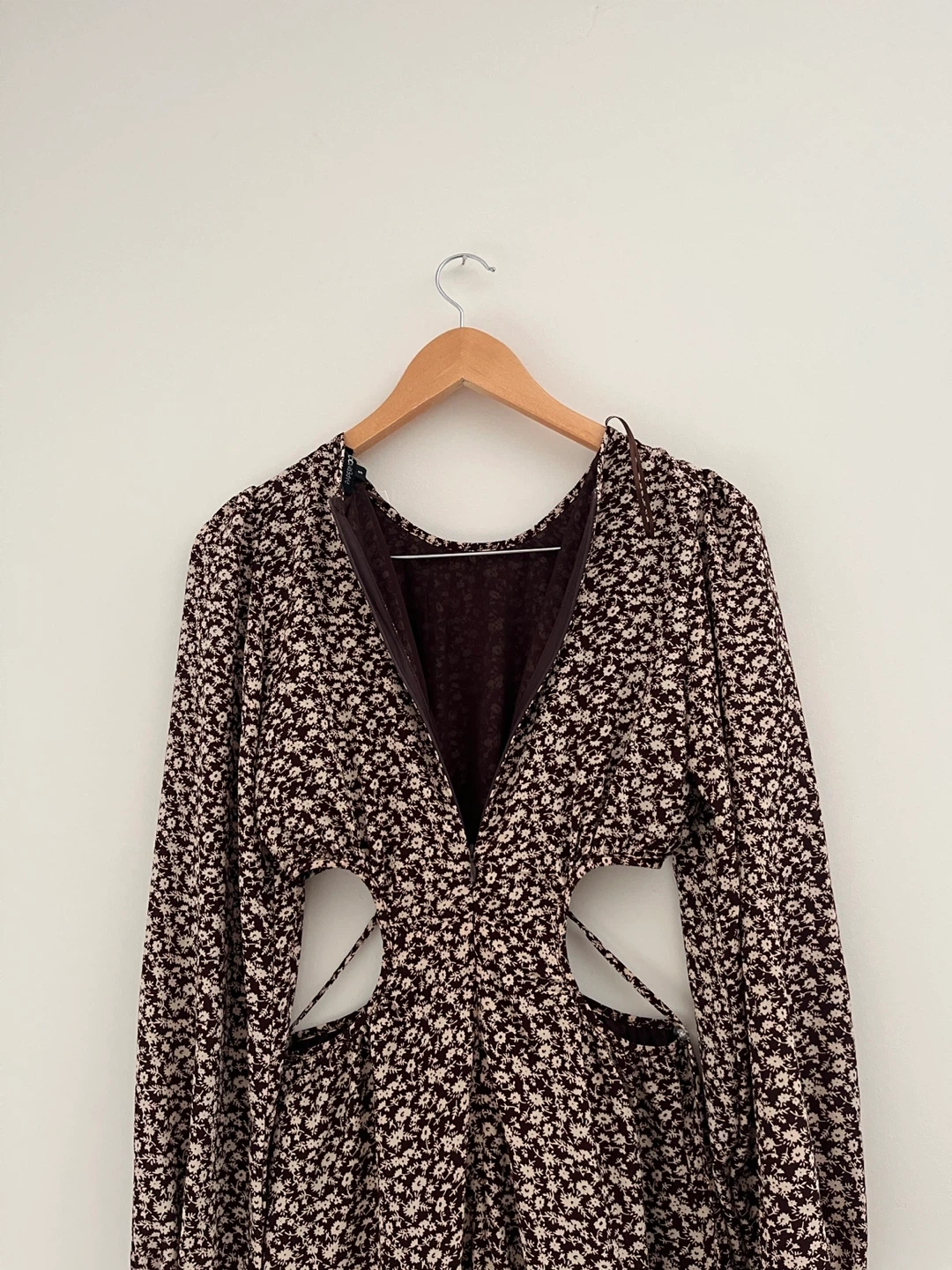 Selling a BNWT Papermoon maxi dress in a lovely floral pattern! It features unique cutout details and long sleeves. The dress is a size small and in great condition. Perfect for adding a touch of elegance to your wardrobe!