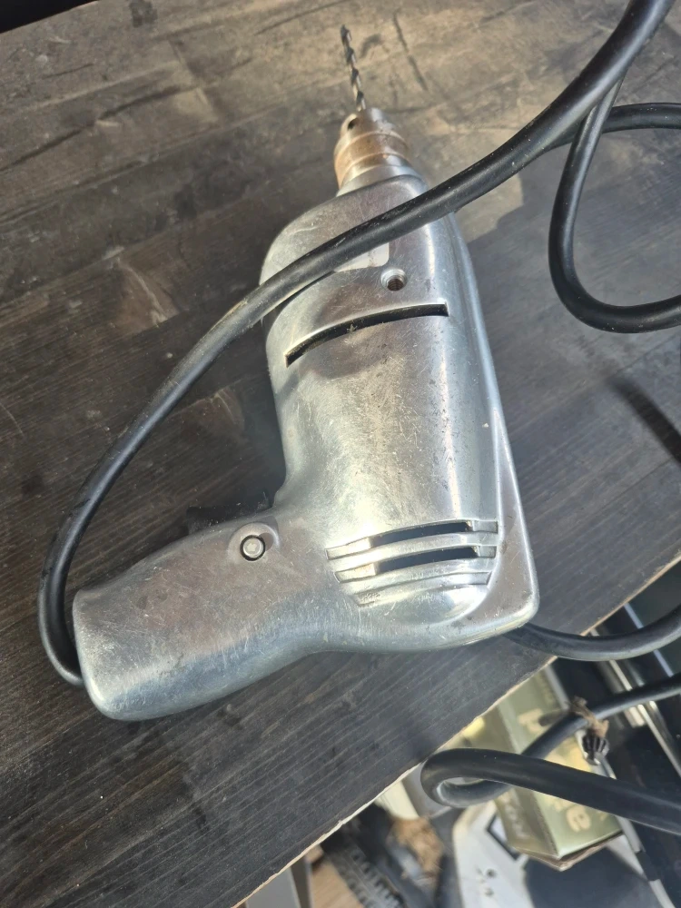 Selling a vintage Black & Decker electric drill. It shows some signs of wear, but it's still in working condition. Great for a DIY project or collector!