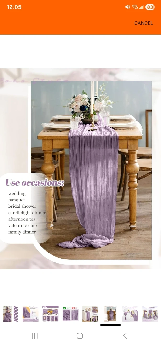 - The size of the 6 table runners are 3ft x 10ft