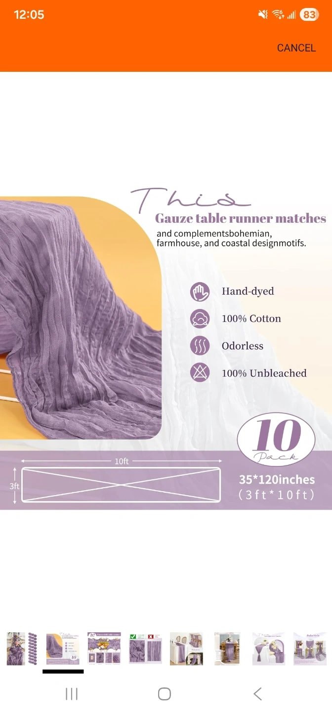 - The size of the 6 table runners are 3ft x 10ft
