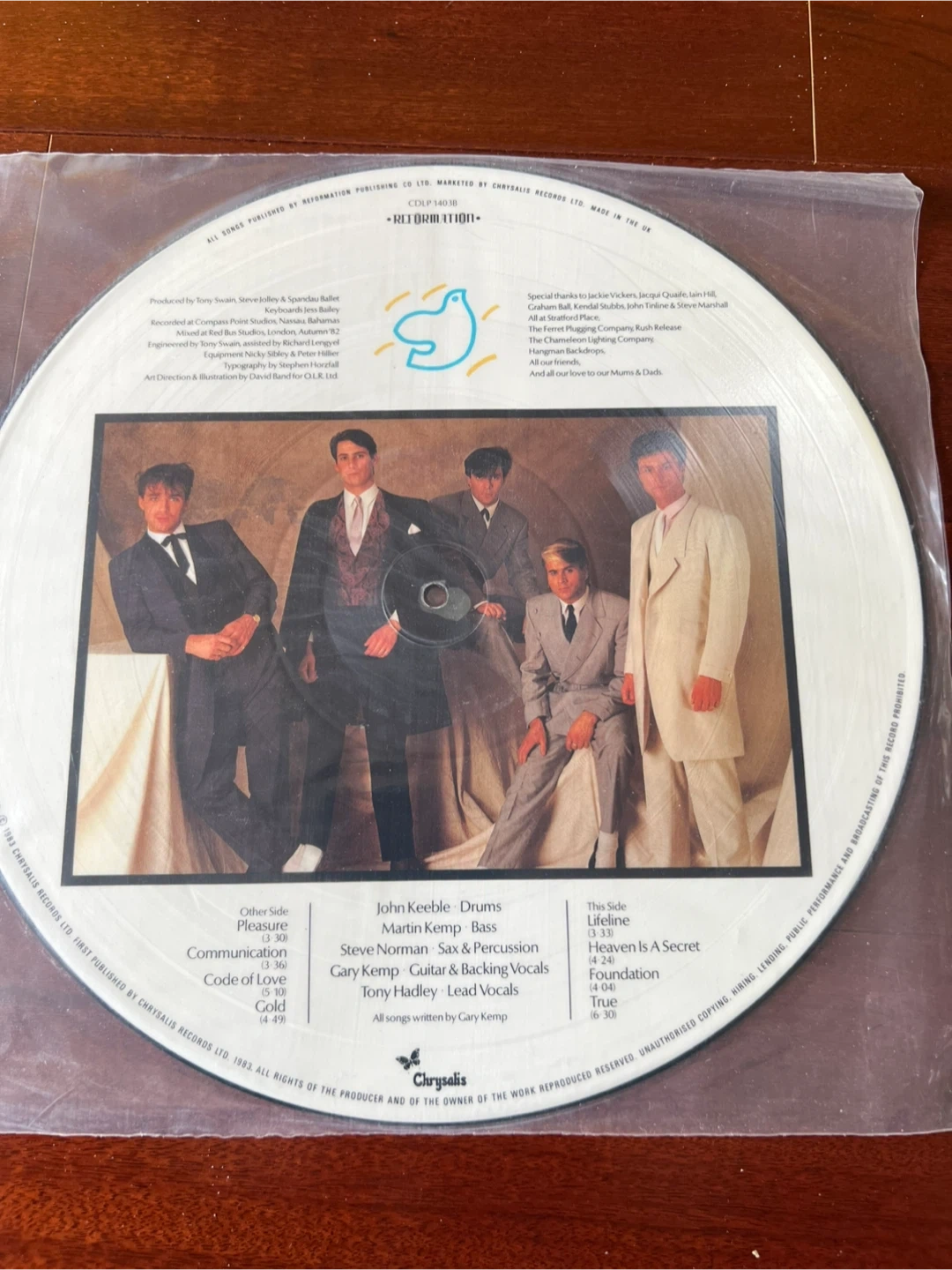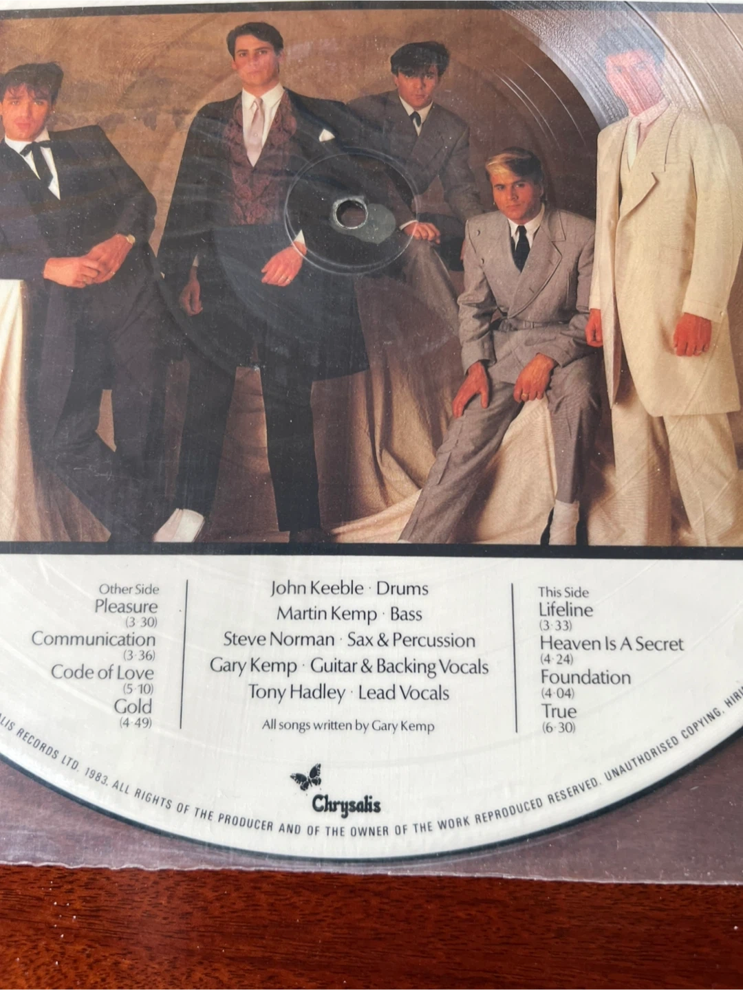 Selling a Spandau Ballet Reformation picture disc vinyl record. It features the songs True, Lifeline, Heaven is a Secret, Foundation, Pleasure, Communication, Code of Love, and Gold. All songs are written by Gary Kemp.