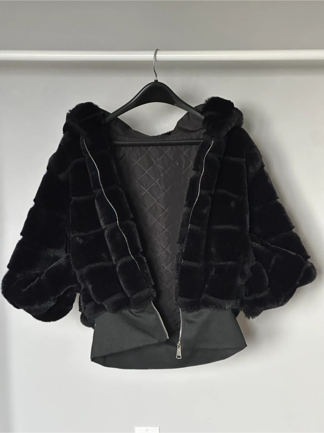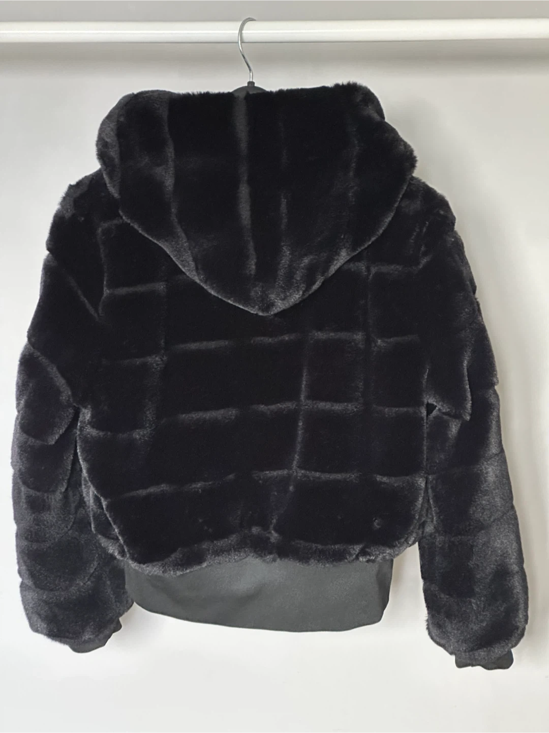 Selling a cozy ladies black faux fur hooded jacket. It's in great condition and insulated for winter.