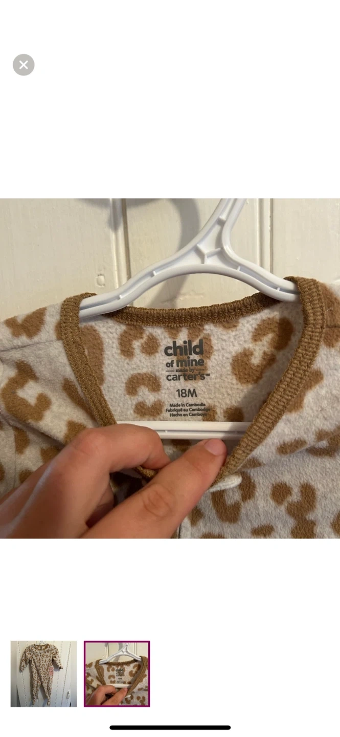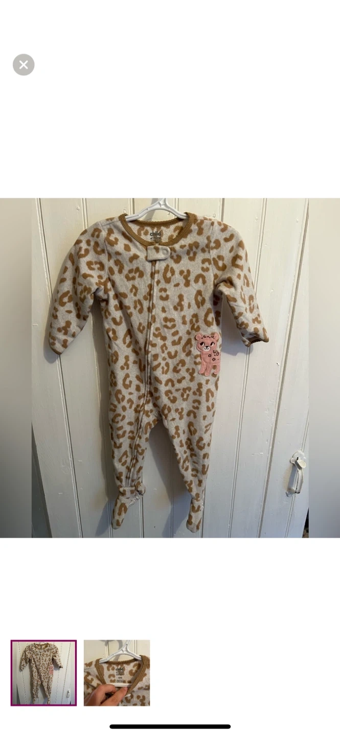 Carters brand. Zip up fleece sleeper. Grey & brown cheetah print. Size 18m. Brand new condition