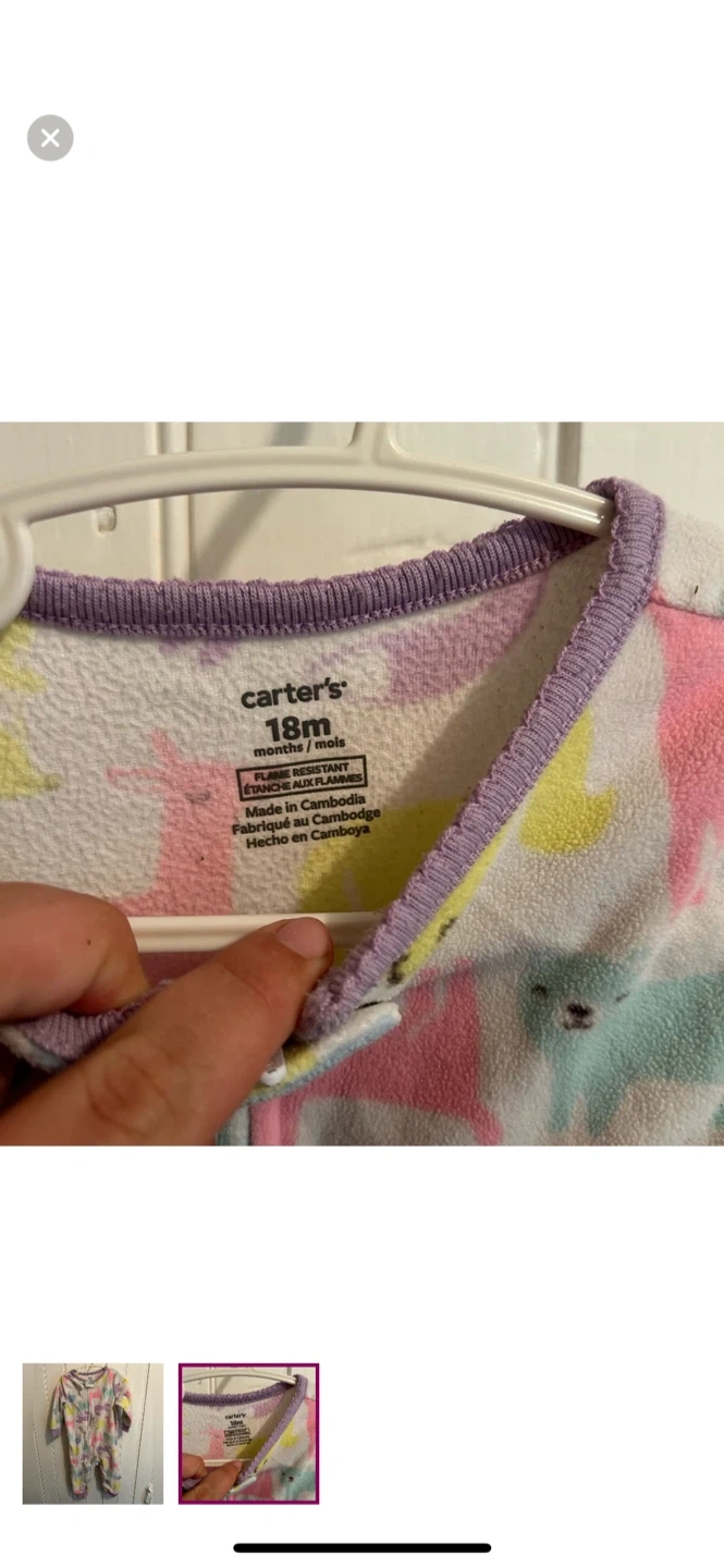 Carters brand. Footless zip up fleece sleeper. Multicoloured animal print. Size 18m. Brand new condition