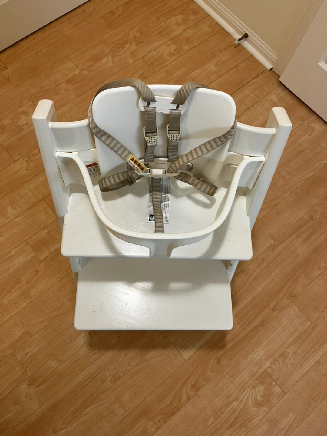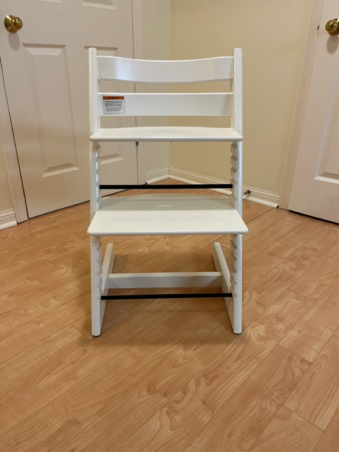 Selling a Stokke Tripp Trapp high chair in good condition. It's a versatile chair that grows with your child, and the adjustable seat and footrest ensure a comfortable fit for your little one. Perfect for meal times and other activities! Price is per chair.