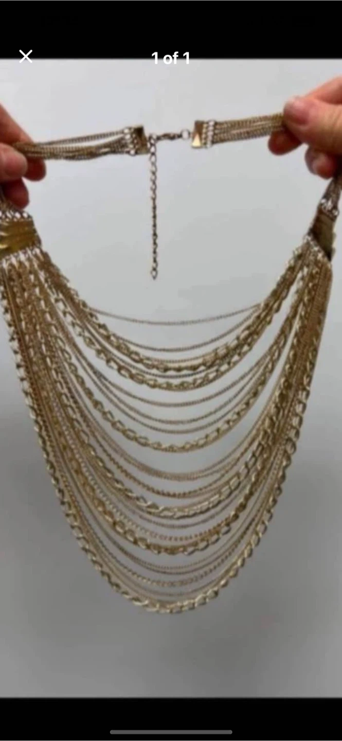 Selling a gold-coloured layered chain necklace. It's in good condition and has an adjustable clasp. Perfect for adding a bit of shine to your outfit!