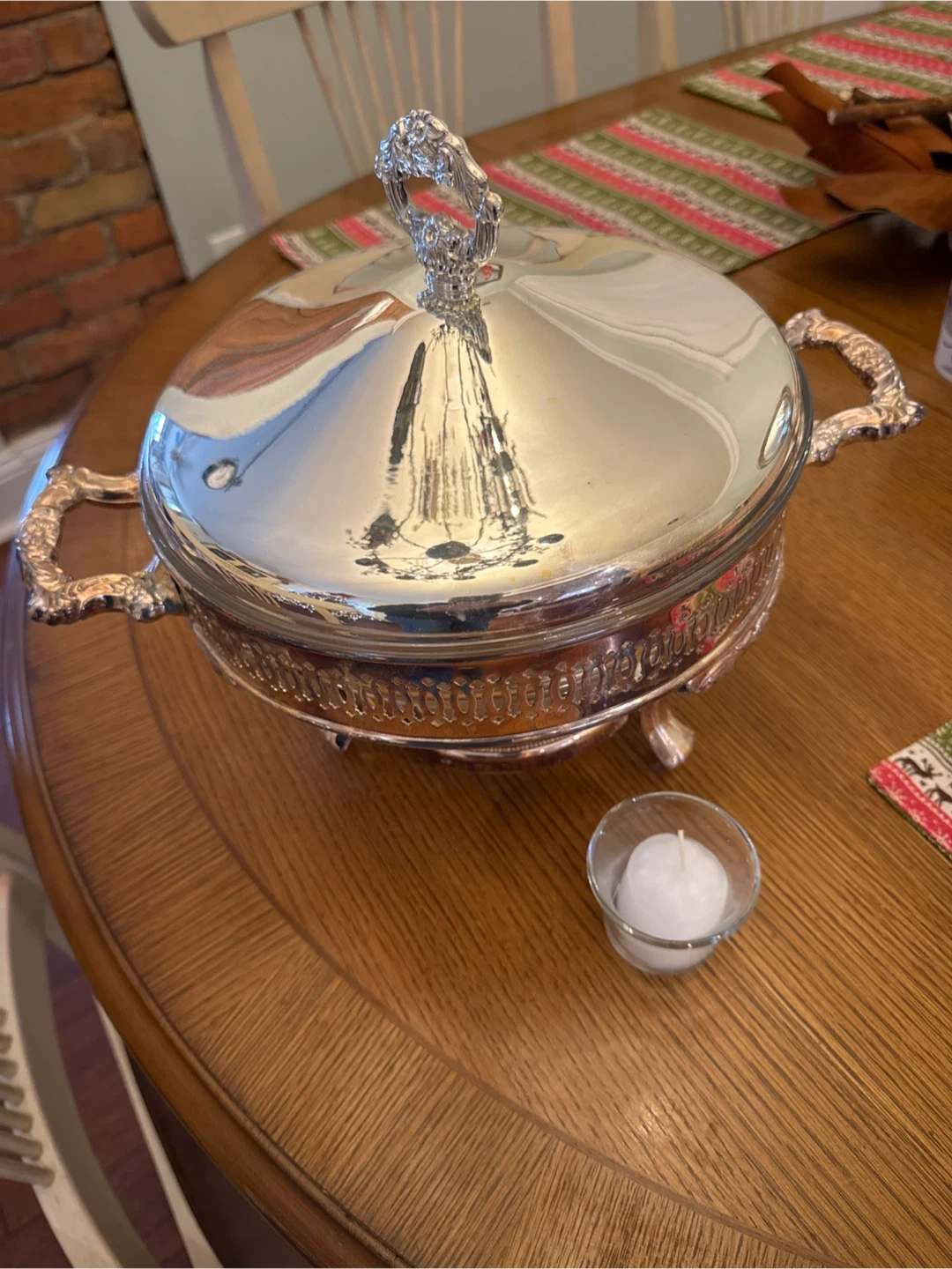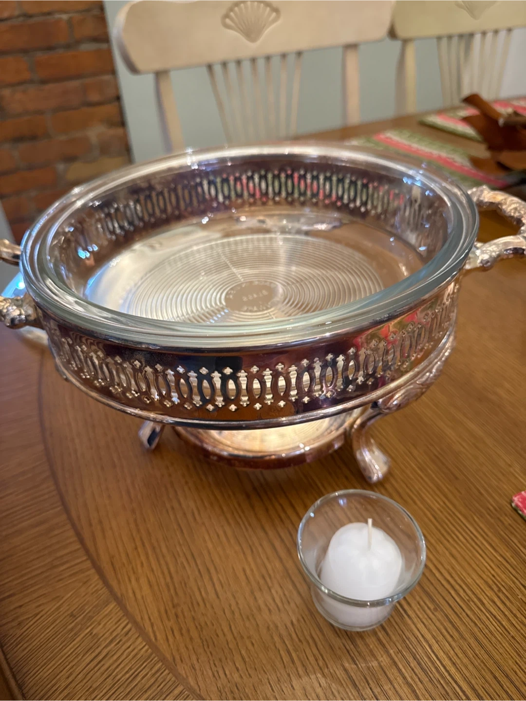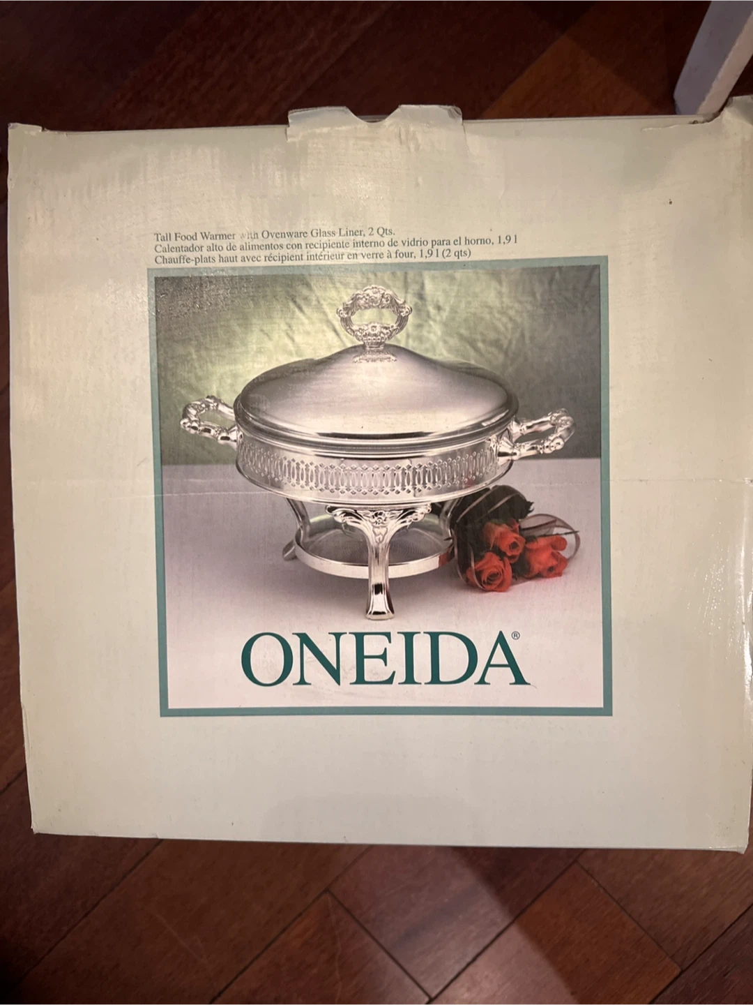 Oneida food warmer with ovenware glass liner. It's a 2 quart size and it has never been used! Comes with the box. Add some class to Christmas dinner.