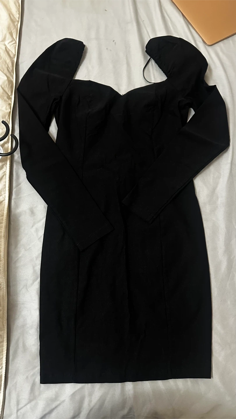 Selling a stylish black long sleeve midi dress in small size ! It's in great condition and perfect for a night out or special occasion. The dress features a flattering silhouette and comfortable fit, making it a versatile addition to your wardrobe. It’s brand new and never worn before
