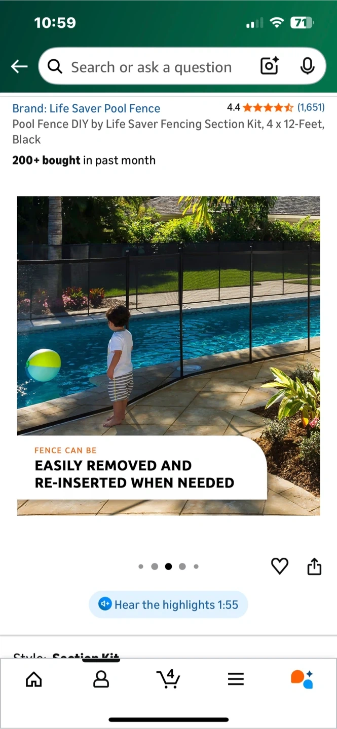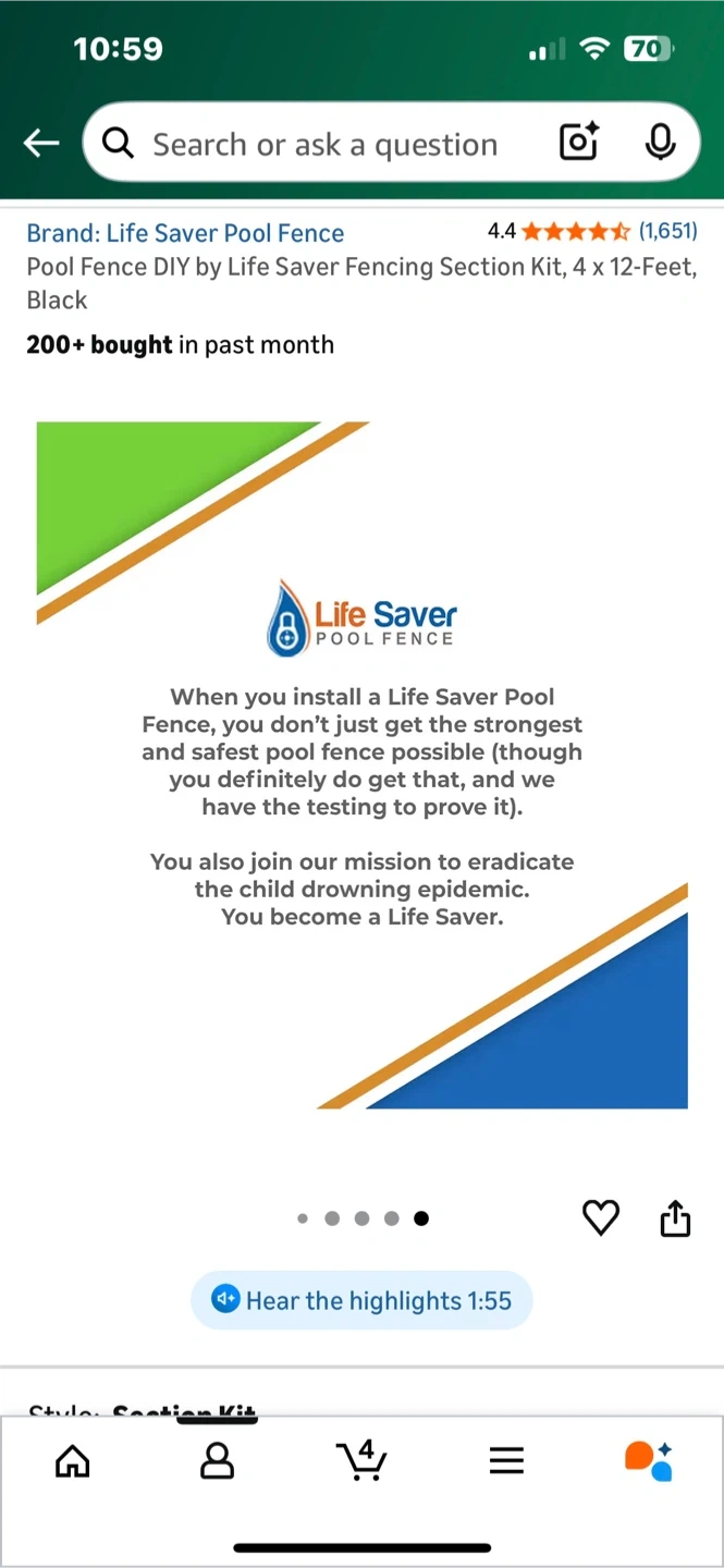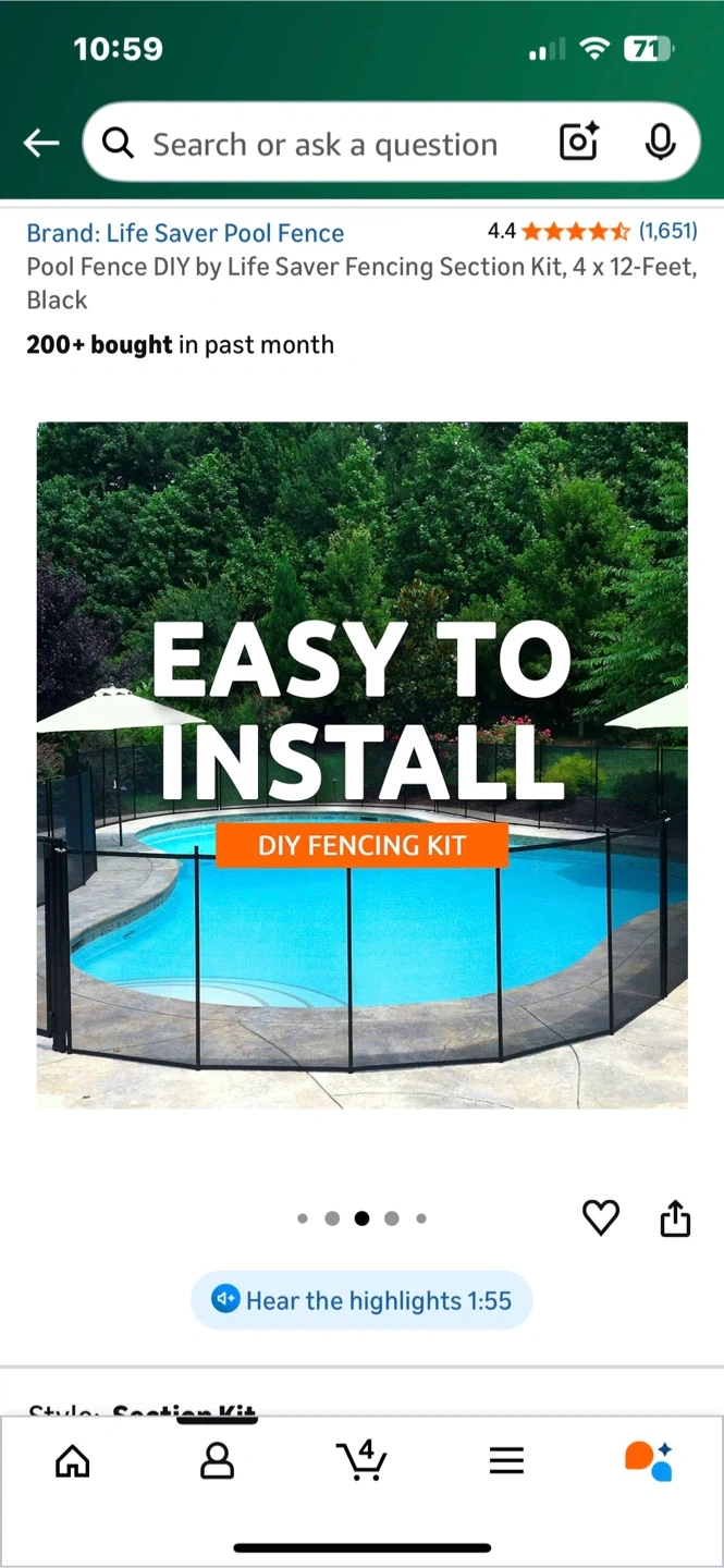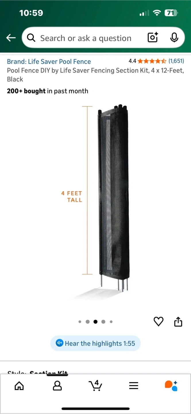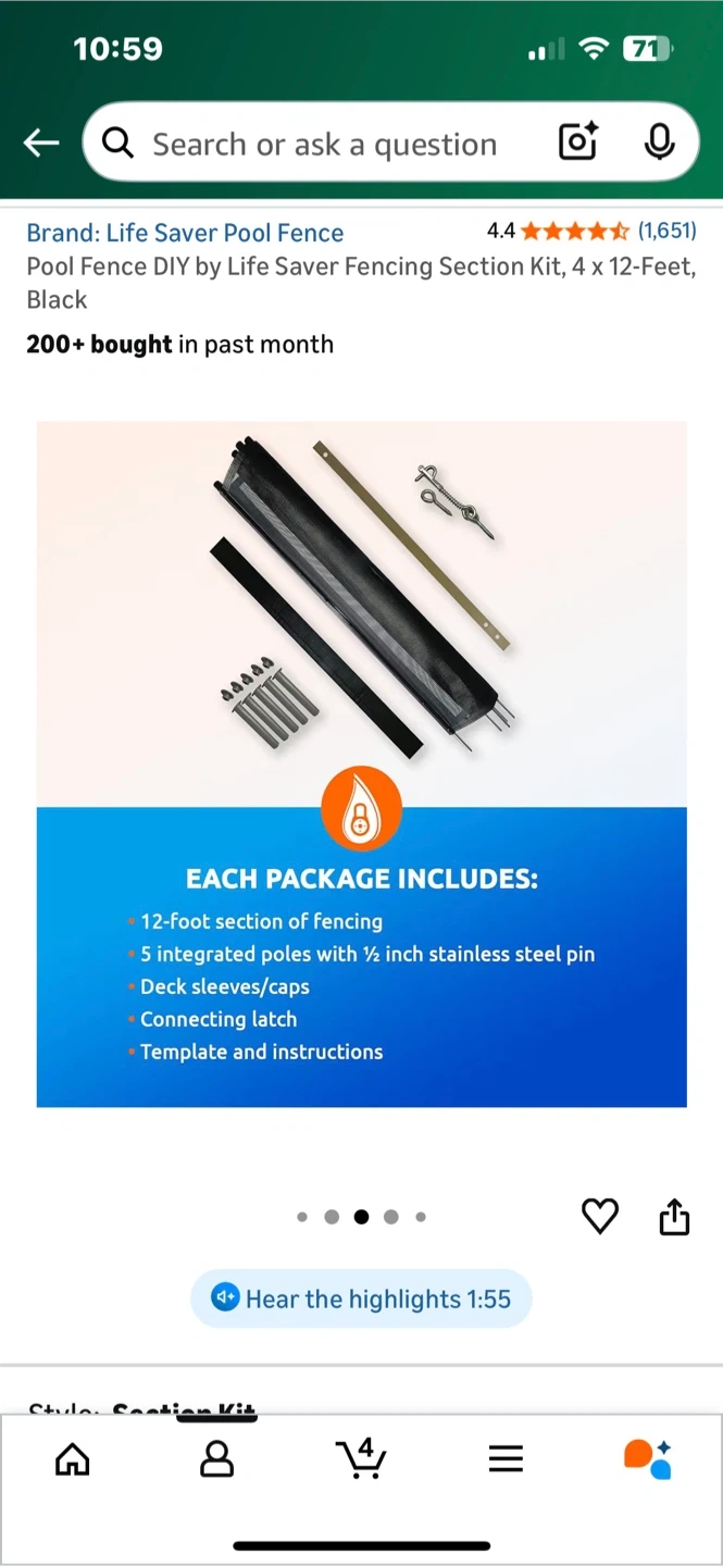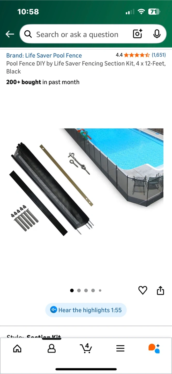 Selling a Life Saver Pool Fence DIY Fencing Section Kit. It's 4 x 12-Feet and black. The package includes: a 12-foot section of fencing, 5 integrated poles with ½ inch stainless steel pin, deck sleeves/caps, connecting latch, and a template with instructions. Easy to install! Have 4 boxes available for $80 each, never been used.