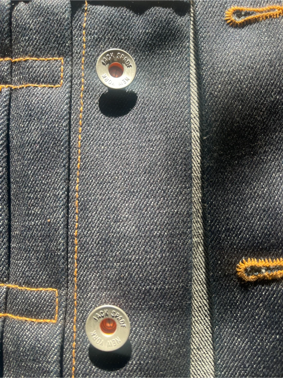 Here's a Jack Spade denim jacket in size M. It's a classic denim jacket with a stylish design. The jacket is new never worn condition and ready for a new owner!